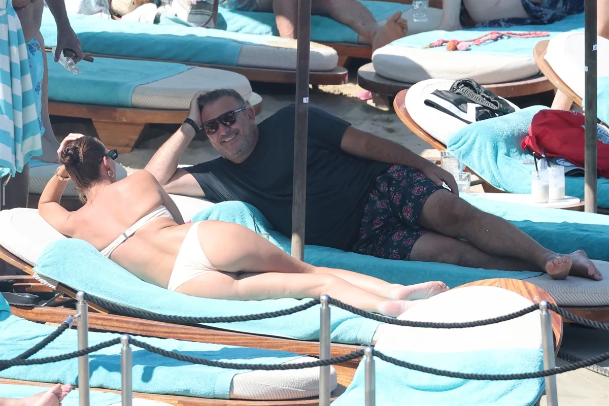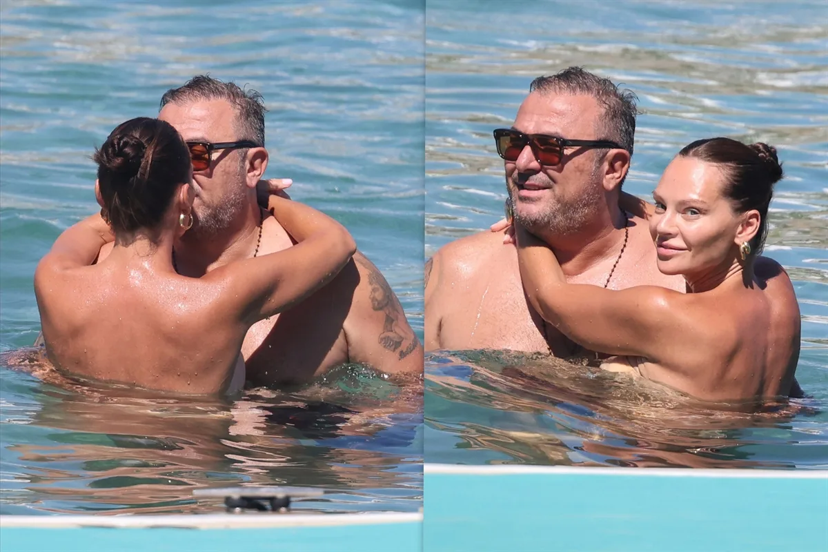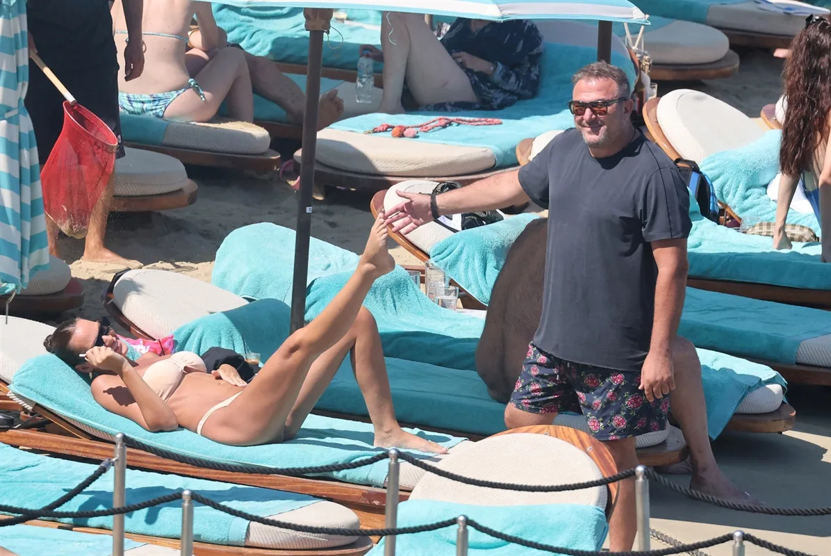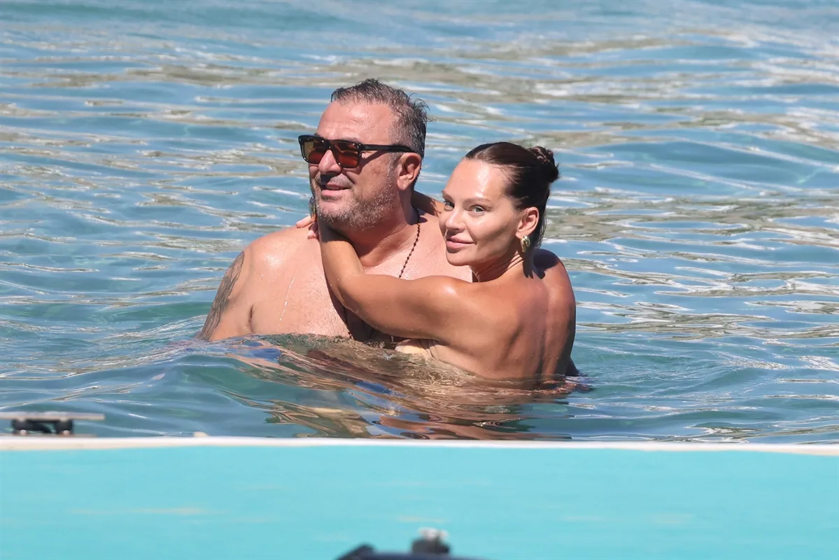 Ο φωτογραφικός μας φακός τους «τσάκωσε» σε παραλία της Μυκόνου να απολαμβάνουν τις βουτιές τους με τα τρυφερά τετ-α-τετ να μη λείπουν.