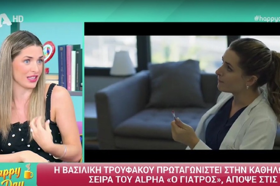 Η Βασιλική Τρουφάκου φιλοξενήθηκε στην εκπομπή «Happy Day» μιλώντας για τη σειρά «Ο γιατρός» και για το πώς από τις σπουδές της για πολιτικός μηχανικός την κέρδισε η υποκριτική.