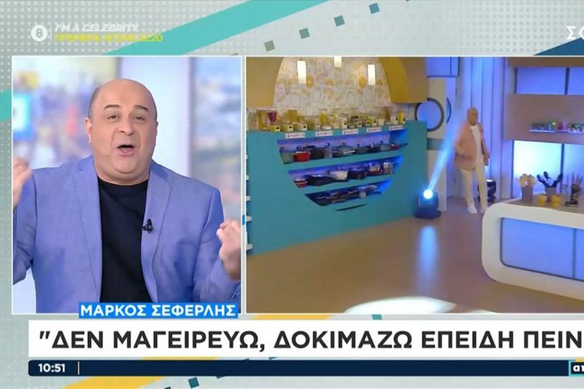 Στην αρχή της συνέντευξης, ο Μάρκος Σεφερλής αναφέρθηκε στην συνεργασία του με τον Έκτορα Μποτρίνι στο νέο τηλεπαιχνίδι που παρουσιάζει: «Με τον Μποτρίνι τα πάμε τέλεια κι αυτό βγαίνει προς τα έξω. Είναι μοναδικός στο είδος του και έχει και πάρα πολλή χιούμορ γι αυτή τη δουλειά. Σαν κριτής είναι πολύ καλός. Εγώ δεν μαγειρεύω, δοκιμάζω και δοκιμάζω επειδή πεινάω και θέλω να δοκιμάσω. Μου λένε από το κοντρόλ να μην το κάνω γιατί μπορεί το κρέας να είναι ωμό. Πρέπει να έχω κι εγώ άποψη, αν και δεν μετράει».