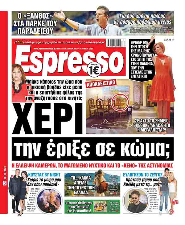 Η «Espresso» κατέγραψε από την πρώτη στιγμή με πλούσιο ρεπορτάζ και ακριβείς πληροφορίες όλο το χρονικό του τραυματισμού, του θανάτου, αλλά και τα της αποτέφρωσης της Μαίρης Χρονοπούλου. Και θα σας παρουσιάσει με λεπτομέρεια κάθε στιγμή και κάθε δευτερόλεπτο από το τελευταίο της ταξίδι.
