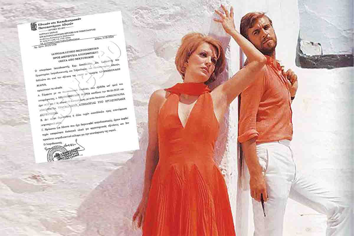 Μαίρη Χρονοπούλου: Στο φως το ιατροδικαστικό πιστοποιητικό που δίνει το πράσινο φως για αποτέφρωση