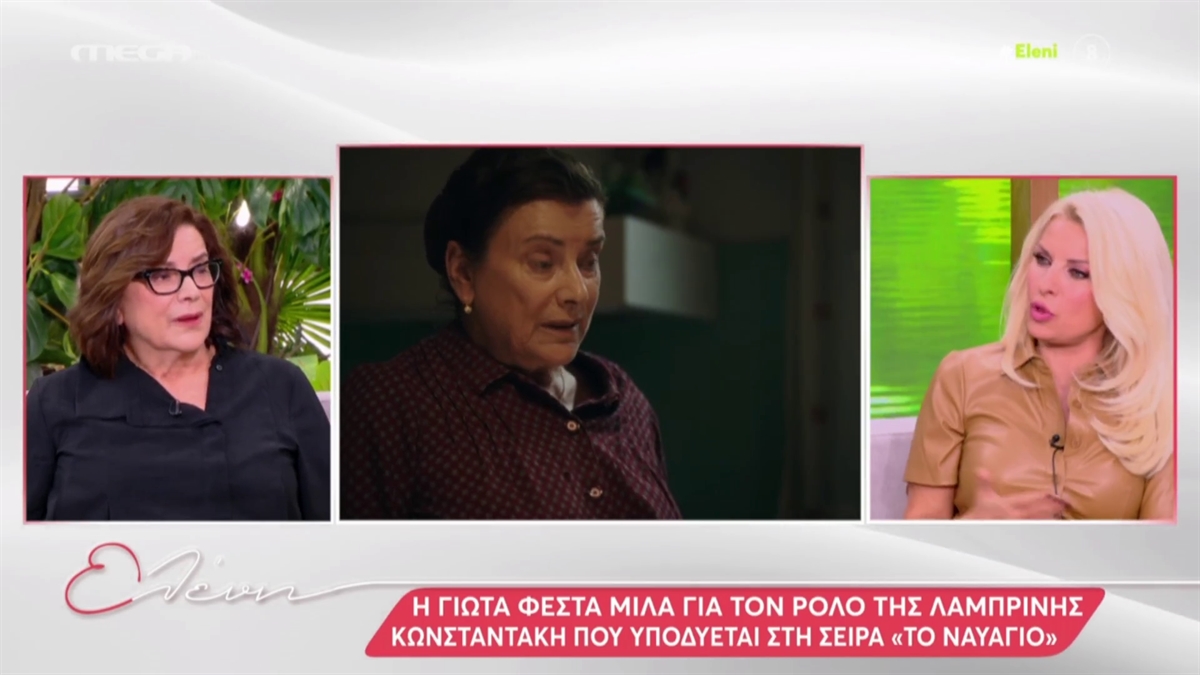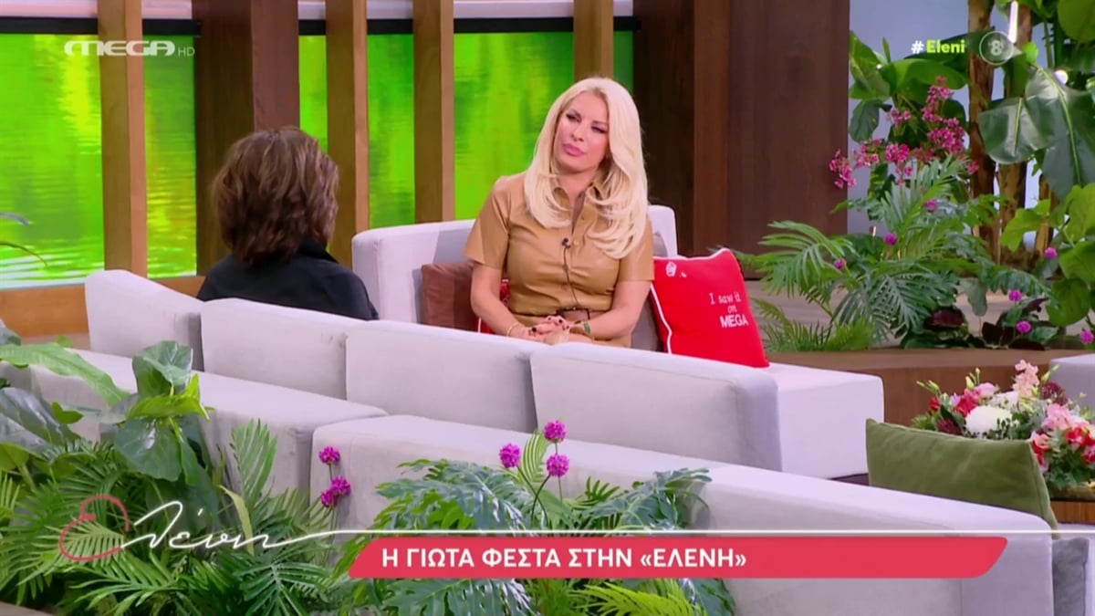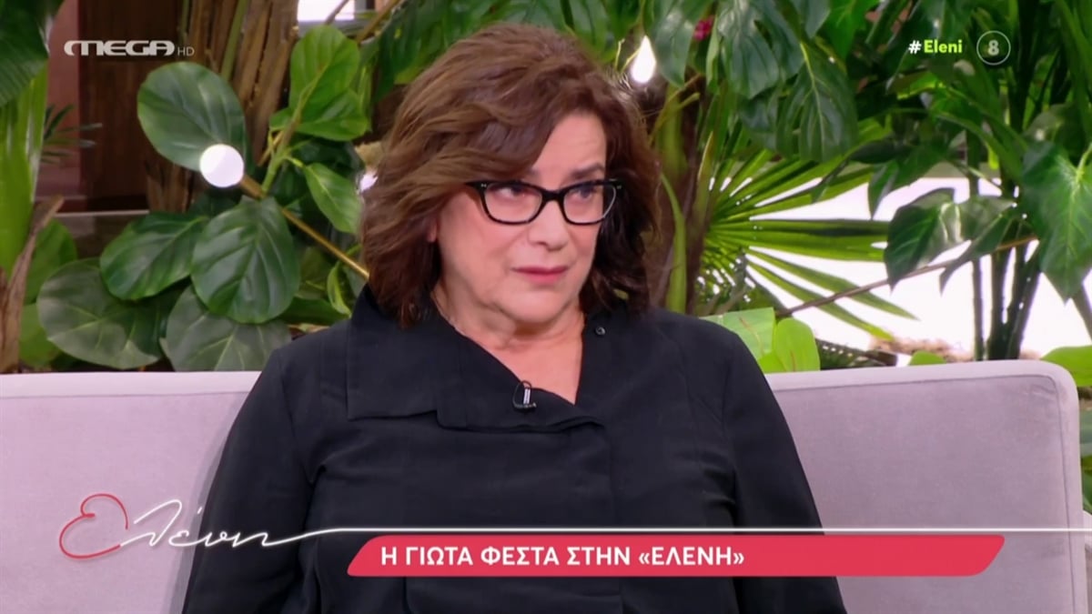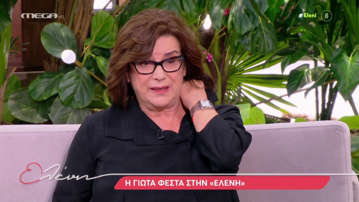 Η Γιώτα Φέστα φιλοξενήθηκε στην εκπομπή «Ελένη» και μίλησε για την καριέρα, την απόρριψη του πατέρα της λόγω του επαγγέλματος της και για την αποχή της από την τηλεόραση. Ενώ αναφέρθηκε στο ρόλο της στο «Ναυάγιο» αλλά και στον «Σασμό».
