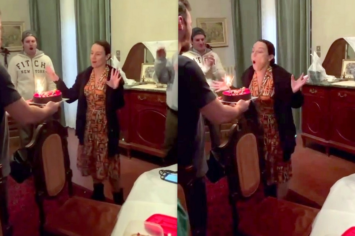 Τη στιγμή που είχαν διάλειμμα και απολάμβαναν το φαγητό τους συνάδελφοί της, εμφανίστηκαν κρατώντας μια τούρτας. Της τραγούδησαν το γενέθλιο κομμάτι και στη συνέχεια έσβησε τα κεράκια της.