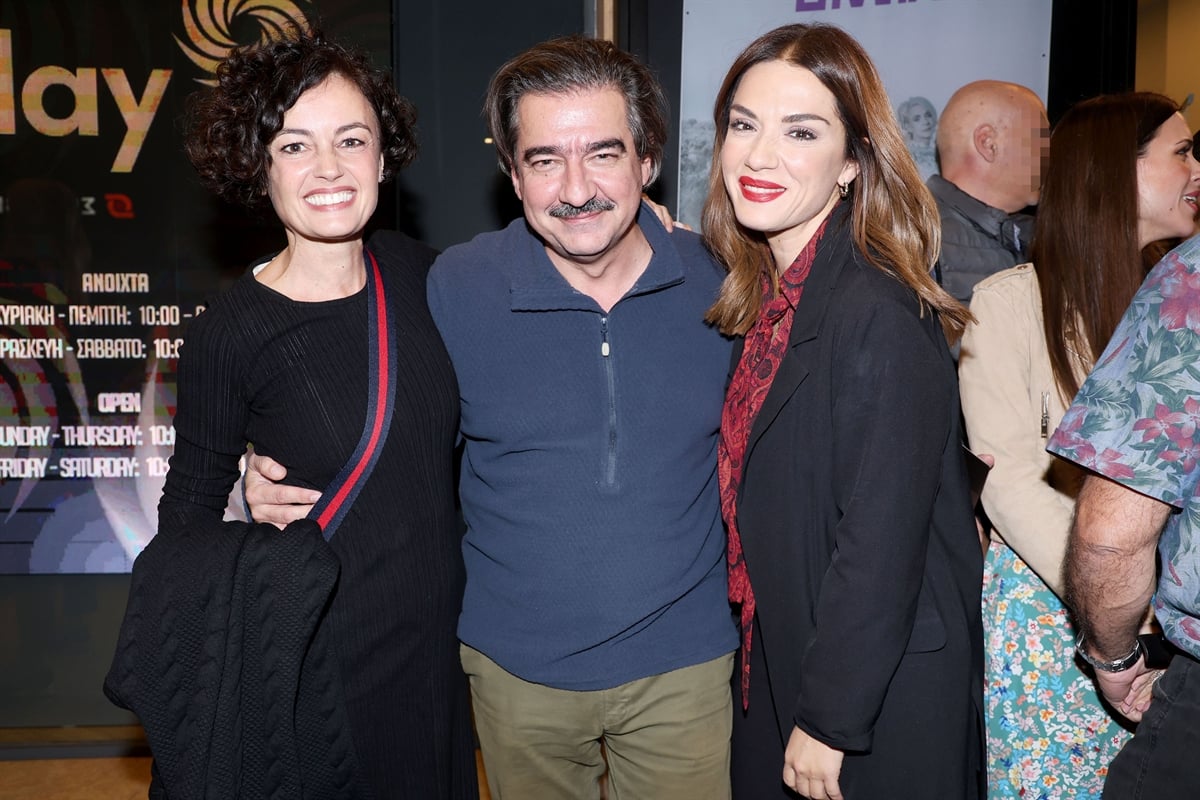 Από τη βραδιά δεν έλειψαν η τηλεοπτική του σύζυγος στο «Σόι σου», Σοφία Πανάγου και η τηλεοπτική του κουνιάδα, Βάσω Λασκαράκη. Μετά το τέλος της παράστασης πήγαν να τον συγχαρούν και πόζαραν όλοι μαζί στον φωτογραφικό μας φακό.