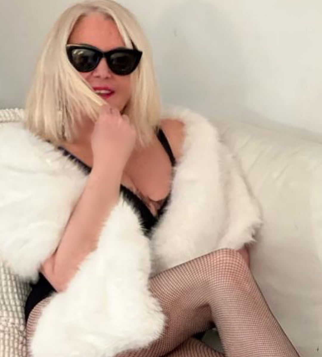 Πόζαρε με αποκαλυπτικά εσώρουχα και γούνα ξαπλωμένη στον καναπέ της και στη συνέχεια τις δημοσίευσε στο instagram γράφοντας: «Christmas mood! Δοκιμάζοντας ρούχα για τα εορταστικά προγράμματα μας ταυτόχρονα διασκεδάζουμε. Όπως βλέπετε φωτογραφιζόμαστε σαν σταρς του Χόλυγουντ. Η καλή διάθεση και τα πειράγματα πρωτοστατούν».