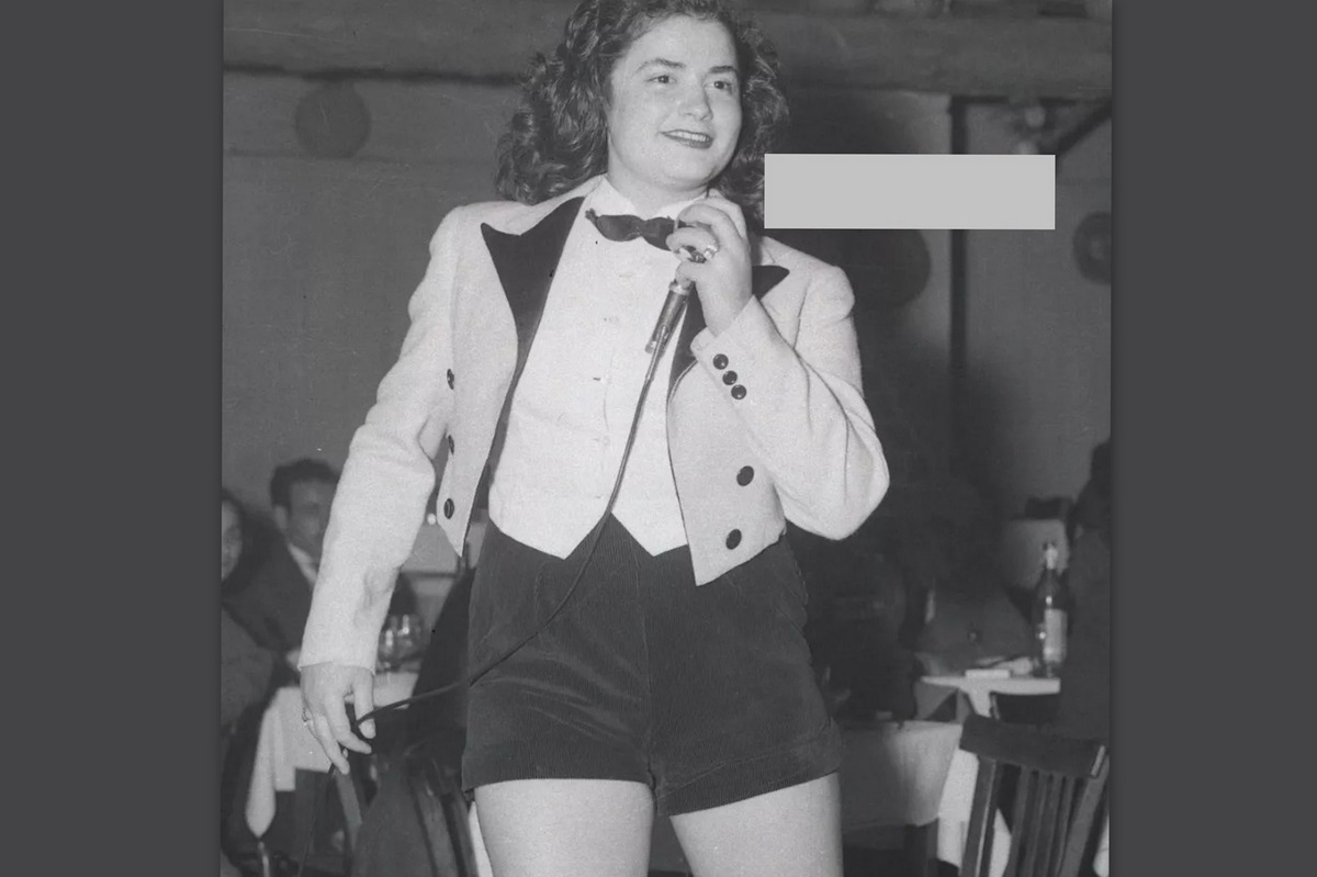 «Σε μία σπάνια φωτογραφία του γνωστού φωτογράφου της εποχής Κλεισθένη Δασκαλάκου, η Ζωζώ Σαπουντζάκη τραγουδά σε νυχτερινό κέντρο, στις αρχές της δεκαετίας του ’50 και είναι αγνώριστη.