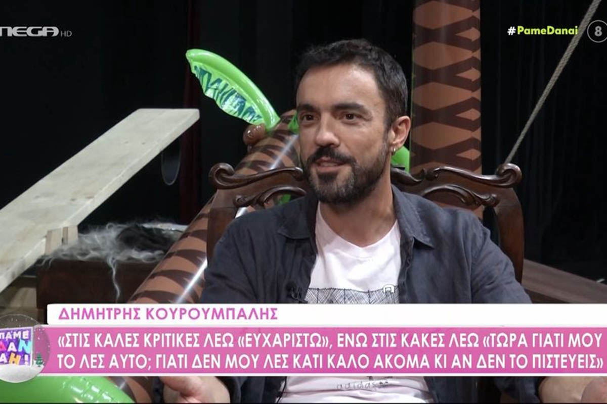 Ο Δημήτρης Κουρούμπαλης με αφορμή την συμμετοχή του στην παράσταση «Το νησί των θησαυρών» στο θέατρο «Πόρτα», παραχώρησε μια συνέντευξη στην εκπομπή «Πάμε Δανάη!». Ο γνωστός ηθοποιός, μέσα σε όλα, αναφέρθηκε αναγνωρισιμότητα, στα αρνητικά σχόλια που έχει ακούσει κατά καιρούς, αλλά και στην πρόταση που δέχτηκε για το «Survivor».