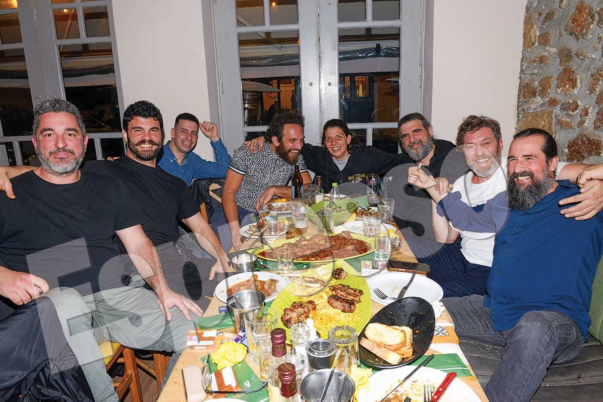 Οι Τάσος Νούσιας και Γιώργος Γάλλος, που ως Σπήλιος Γερακάρης ο πρώτος και ως Μιχαήλ Λάσκαρης ο δεύτερος φαγώνονται στη «Μάγισσα», ο Μάρκος Παπαδοκωνσταντάκης (υποδύεται τον πρωτότοκο γιο του Γάλλου στη σειρά του ΑΝΤ1), ο Θεοδόσης Φυλακτός (ο φρούραρχος του πύργου των Λασκαραίων) και ο Γιάννης Στάνκογλου, τον οποίο φέτος απολαμβάνουμε στη σειρά «Ναυάγιο». Μάλιστα, μετά τα παπαρατσικά κλικ ο φωτογράφος μας μπήκε στο εστιατόριο και με την ευγένεια που τον χαρακτηρίζει ζήτησε από τους πρωταγωνιστές της μικρής οθόνης να ποζάρουν στον φακό του, χωρίς να του χαλάσουν το χατίρι! Και επειδή φωτορεπορτάζ χωρίς το απαραίτητο ρεπορτάζ δεν γίνεται, ψάξαμε και μάθαμε για τον… μυστικό δείπνο των αγαπημένων ηθοποιών.
