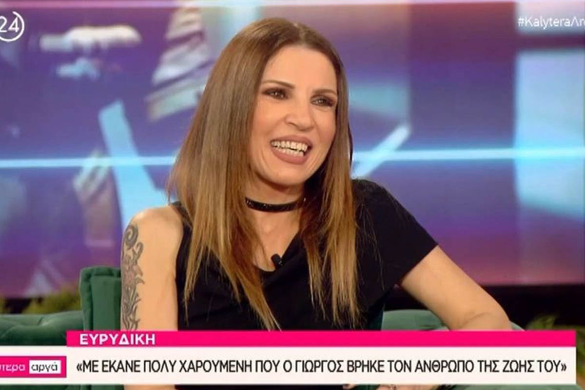 Η Ευρυδίκη παραβρέθηκε στο πλατό της εκπομπής «Καλύτερα Αργά» και παραχώρησε μια συνέντευξη. Η γνωστή τραγουδίστρια, μεταξύ άλλων, αναφέρθηκε στον πρώην σύζυγό της Γιώργο Θεοφάνους.