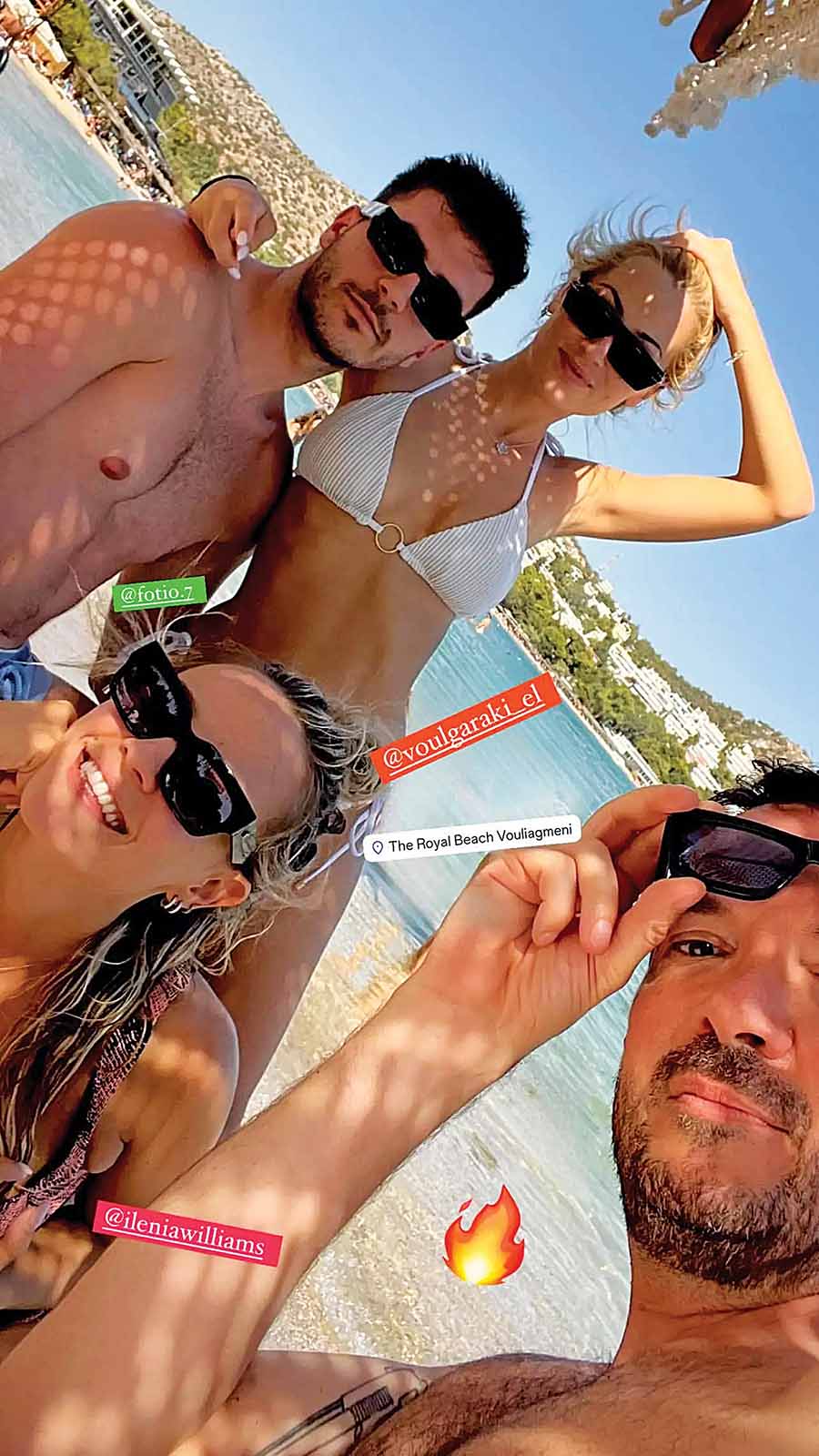 Ο άσος του Παναθηναϊκού Φώτης Ιωαννίδης, σε ένα break από την ατομική προετοιμασία που κάνει αυτή την εποχή για την ομάδα του, πήρε την αγαπημένη του Ελένη Βουλγαράκη και πήγαν να κάνουν το μπάνιο τους σε παραλία στη Βουλιαγμένη. Μαζί με το ζευγάρι ήταν και δύο φίλοι τους, η Ιλένια Ουίλιαμς και ο Δημήτρης Τσακουμής, με τους οποίους πόζαραν σε μια selfie που αναδημοσιεύτηκε στα Instagram stories του ποδοσφαιριστή. Στο «κλικ» ο Φώτης κρατά αγκαλιά την όμορφη ραδιοφωνική παραγωγό και συνεργάτιδα του Γιώργου Λιάγκα στο «Πρωινό» του ANT1, δείχνοντας πολύ ευτυχισμένος δίπλα της. Το ίδιο βέβαια και η Ελένη, για την οποία φημολογείται πως δέχτηκε την πρόταση που της έκανε ο αγαπημένος της να ζήσουν μαζί κάτω από την ίδια στέγη.