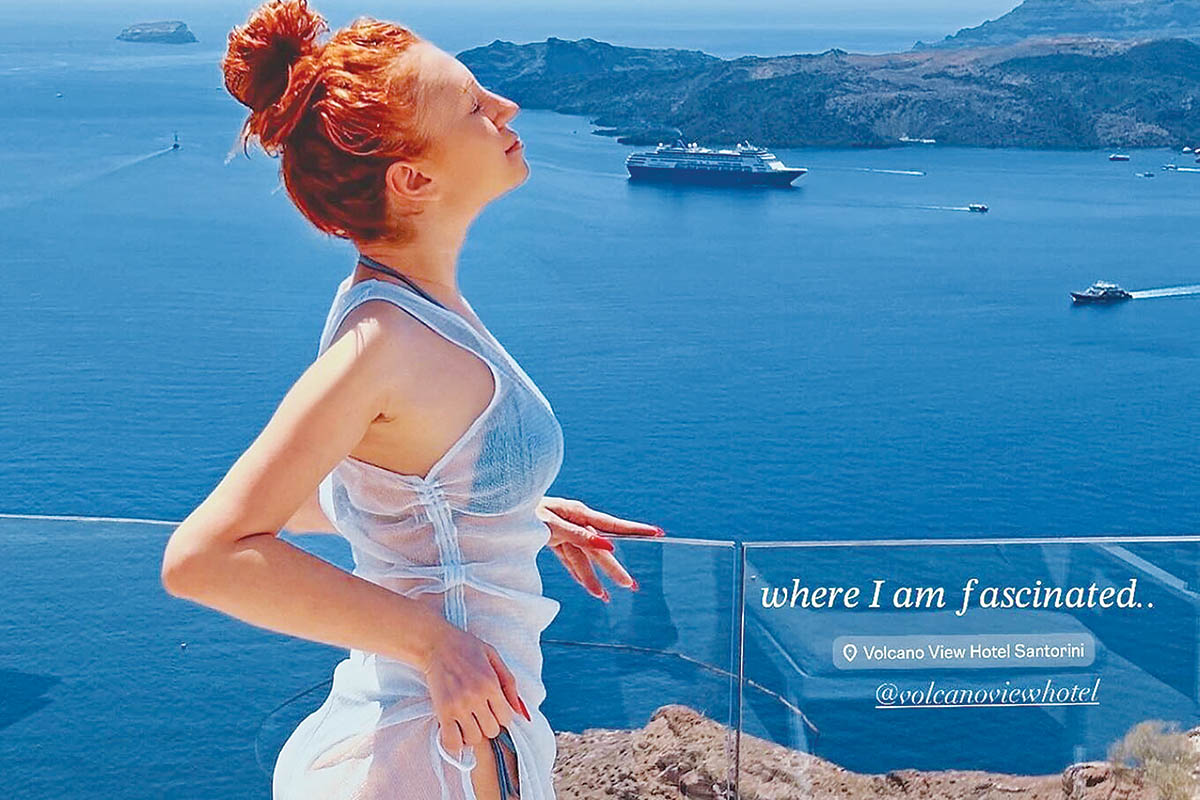 Τα μέρη που επισκέπτονται με τον καλό της, το μενού που προτιμούν στο πρωινό και το δείπνο τους, αλλά και την ίδια να ποζάρει σε διάφορα σημεία της Σαντορίνης.