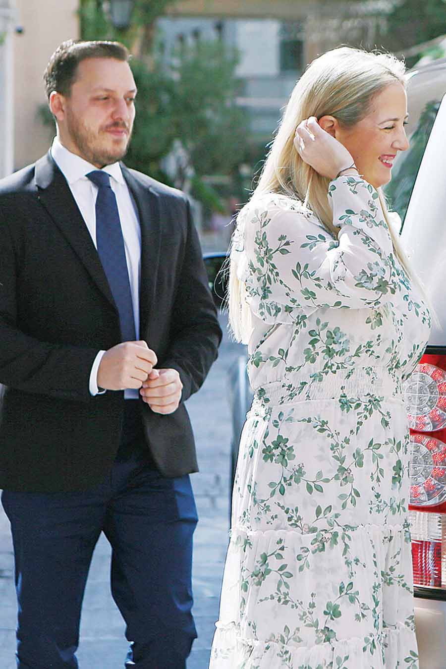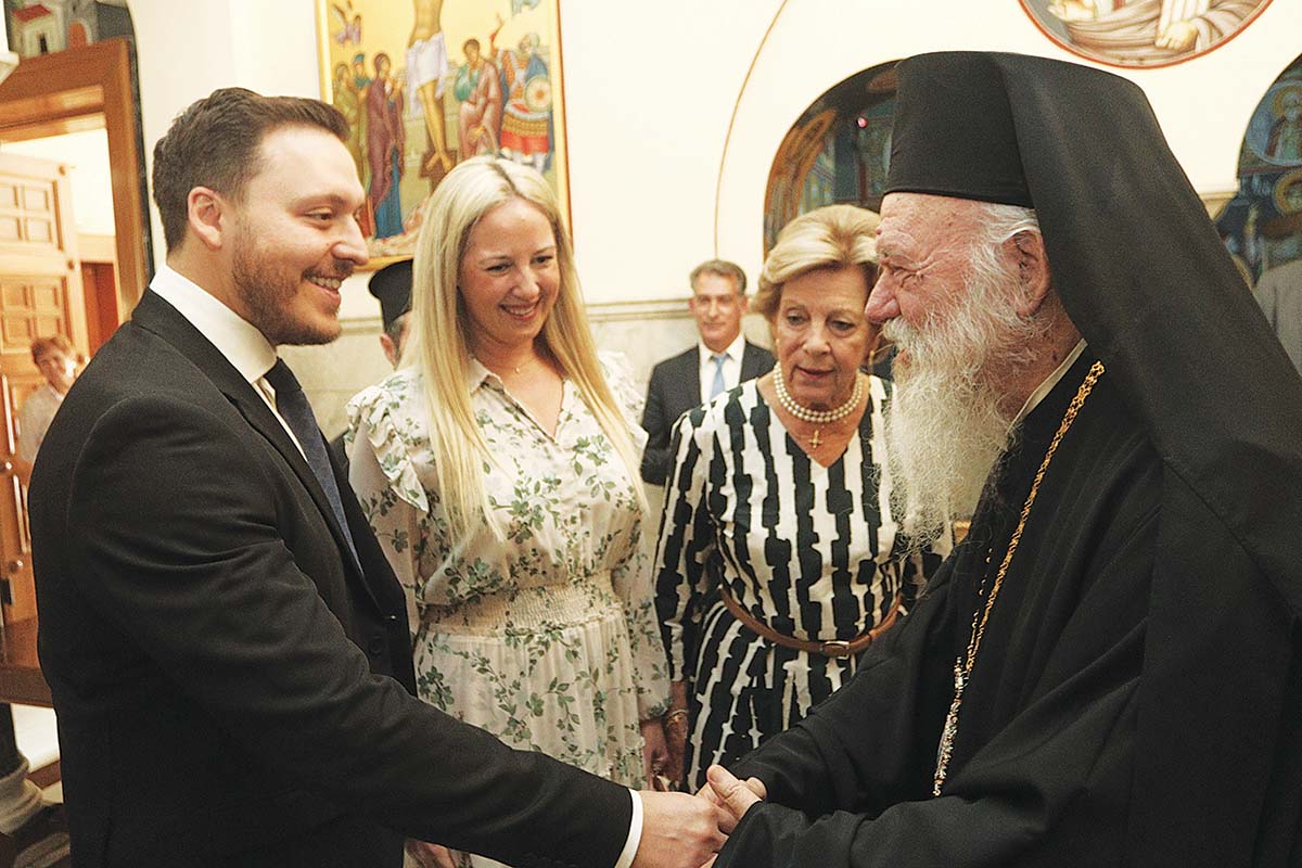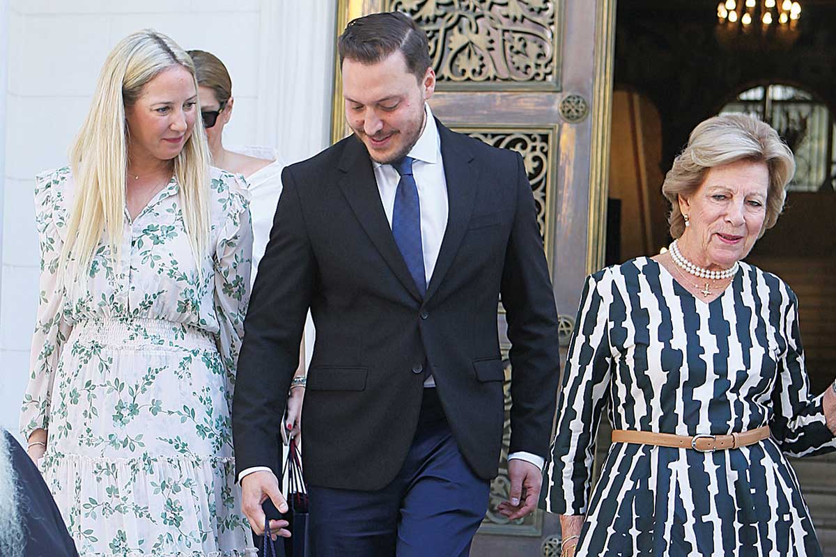 Τα ευδιάθετα αλλά και συγκινημένα μέλη της τέως βασιλικής οικογένειας υποδέχθηκε στην Ιερά Αρχιεπισκοπή ο πρωτοσύγκελος αρχιμανδρίτης με τους τρεις ιεροκήρυκες, ενώ στην Αίθουσα του Θρόνου τούς υποδέχθηκε ο Αρχιεπίσκοπος Ιερώνυμος. Το φόρεμα της Αννας Μαρίας ήταν Max Mara, αξίας 720 ευρώ, και το floral φόρεμα της πριγκίπισσας Θεοδώρας ήταν του brand MISA, αξίας 250 ευρώ, ενώ κρατούσε τσάντα του οίκου LV αξίας. Οι πινακίδες του λευκού τζιπ που τους μετέφερε στην Πλάκα ήταν κίτρινες και είχαν πάνω τους τα γράμματα K13 GRE. Μετά τις ευχές αγάπης και τη σύντομη συνομιλία ο κ. Ιερώνυμος προσέφερε τα αναμνηστικά δώρα της Αρχιεπισκοπής, βιβλία στην τέως βασίλισσα και σταυρούς στη μέλλουσα νύφη και στον μέλλοντα -πάντα χαμογελαστό- γαμπρό. Ακολούθησαν οι καθιερωμένες αναμνηστικές φωτογραφίες, ενώ τόσο στον Αρχιεπίσκοπο όσο και στους ιερείς το ζεύγος θα στείλει μετά τον γάμο του μπομπονιέρες.