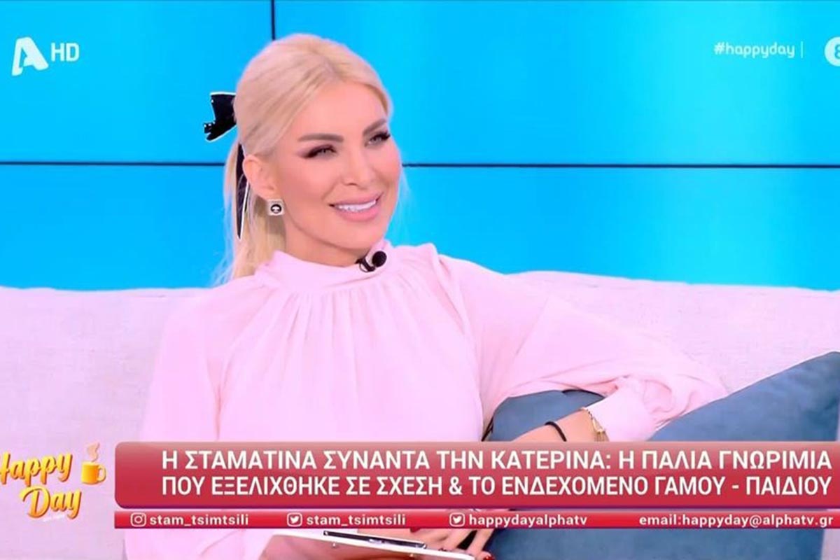 Η Σταματίνα Τσιμτσιλή πέρασε στο απέναντι πλατό στα στούντιο του Alpha και συνάντησε την Κατερίνα Καινούργιου. Η παρουσιάστρια της εκπομπής Super Κατερίνα στην συνέντευξη που παραχώρησε μίλησε για την προσωπική της ζωή, αλλά και για την οικογένεια που θα ήθελε να κάνει.