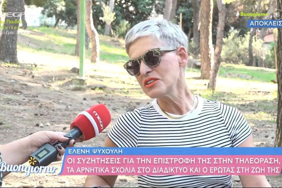 Η Ελένη Ψυχούλη παραχώρησε μια συνέντευξη στην εκπομπή «Buongiorno» και μεταξύ άλλων, αναφέρθηκε στην ενδεχόμενη επιστροφή της στην τηλεόραση.