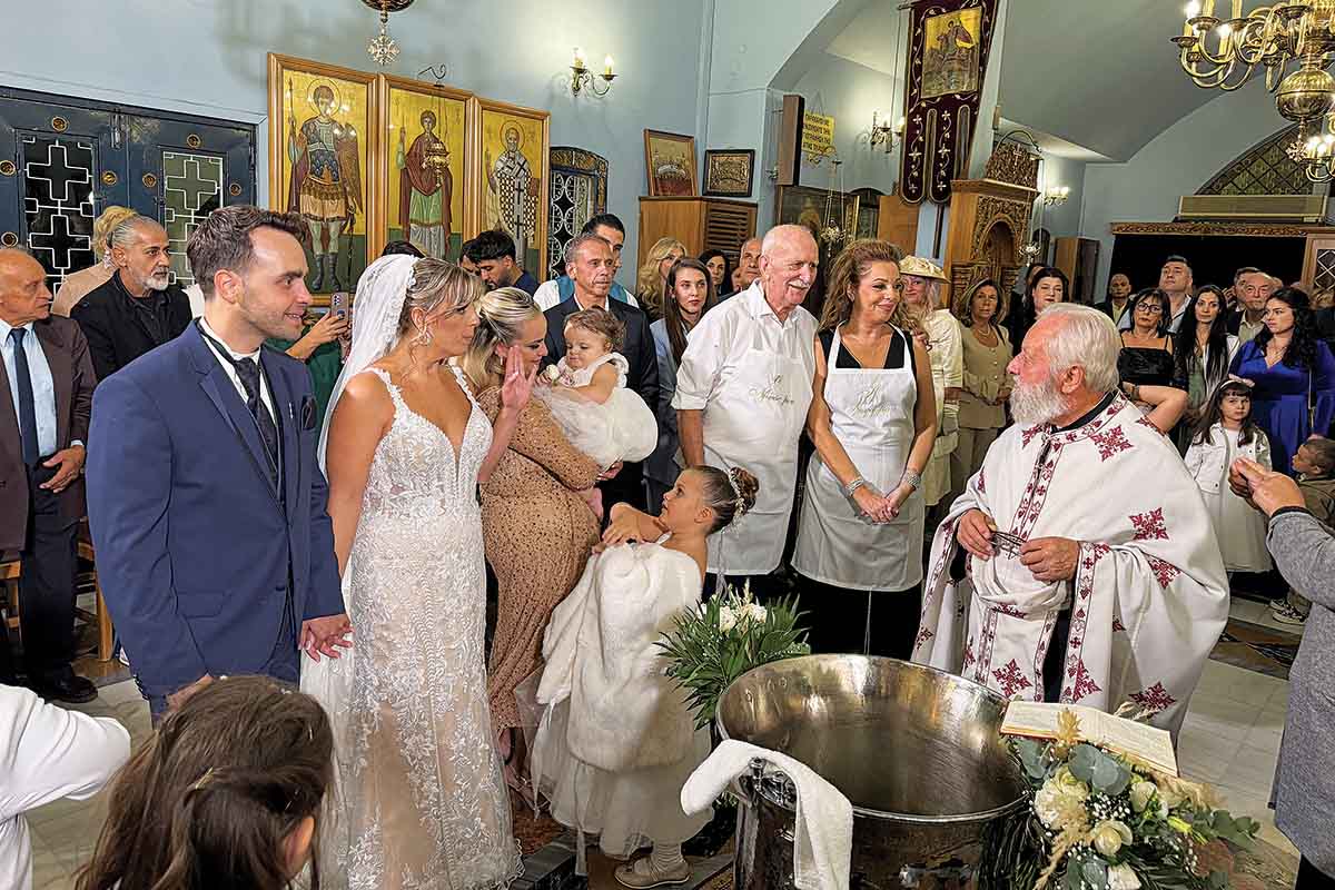 Με το κρύο στους πρόποδες της Πάρνηθας να είναι αρκετά τσουχτερό, δημοσιογράφοι, όλος ο κόσμος του ΑΝΤ1, πρόσωπα της πολιτικής και ασφαλώς της τηλεόρασης, που ήταν προσκεκλημένοι, γλέντησαν με την ψυχή τους μετά το τέλος των δύο μυστηρίων στο γλέντι που ακολούθησε και κράτησε έως το πρωί.