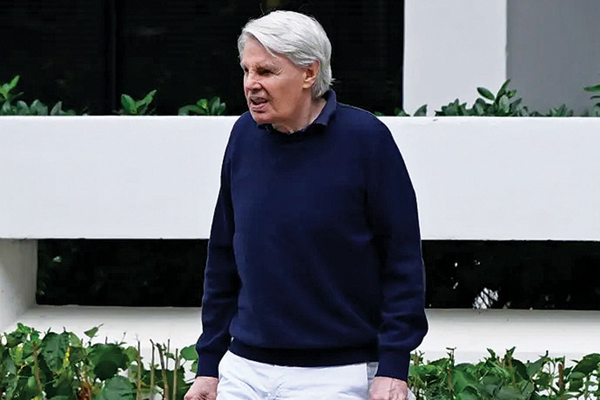 Ο πρώην CEO της Abercrombie & Fitch, Μάικ Τζέφρις, εξερχόμενος του δικαστηρίου και φορώντας στο πόδι του βραχιολάκι επιτήρησης