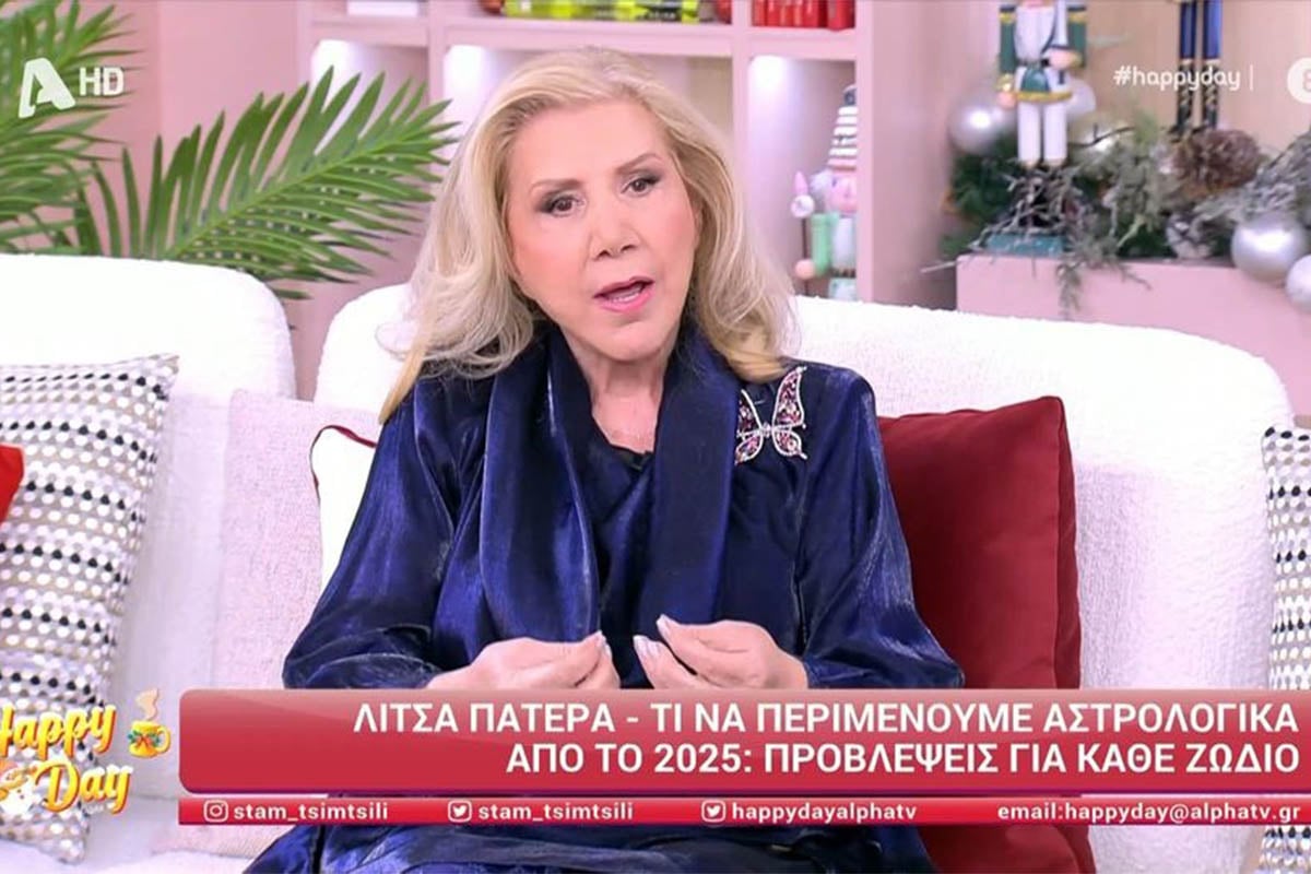 Η Λίτσα Πατέρα κάθισε στον καναπέ της εκπομπής Happy Day και παραχώρησε μια συνέντευξη. Η γνωστή αστρολόγος, μεταξύ άλλων, αναφέρθηκε στο νέο της ξεκίνημα στην ιστοσελίδα του ANT1, αλλά και στις προβλέψεις της για την χρονιά που μπήκε.