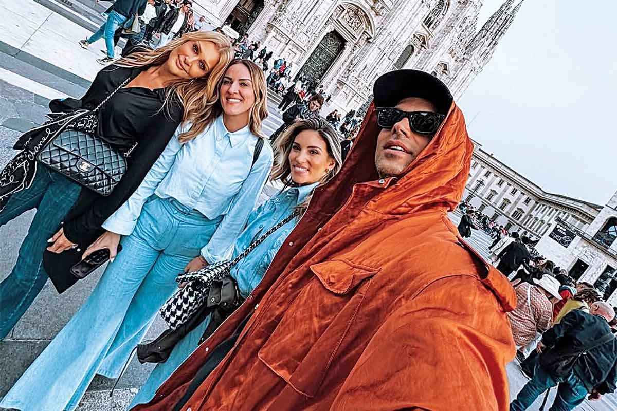 Εκεί το ερωτευμένο ζευγάρι συναντήθηκε με τις καλές φίλες της ηθοποιού Νατάσα Θεοδωρίδου και Νικόλ Παναγιώτου, και όλοι μαζί φωτογραφήθηκαν έξω από τον καθεδρικό ναό του Μιλάνου Duomo, σε μια selfie που έβγαλε ο πρώην μπασκετμπολίστας.