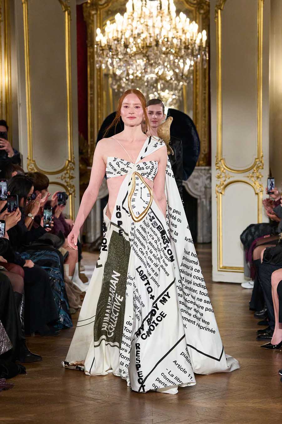 Στο εντυπωσιακό «Hôtel Marois», όπου καλεσμένοι, ανάμεσά τους και πρίγκιπες, όπως η Princess Yasmine Murat της οικογένειας Napoleon Bonaparte, περπατούσαν ανάμεσα σε εκατοντάδες αναμμένα κεριά μέχρι να φτάσουν στον χώρο της επίδειξης, όλα είχαν τη σφραγίδα της Αντας Ηλιοπούλου! Και δεν είχε μόνο άρωμα βασιλικών οίκων η επίδειξη, μια και εκεί ήταν η οικογένεια Chaplin (που διοργάνωσε το VIP prive party μετά το show), ambassadors των Ηνωμένων Εθνών, οι κοσμικές -και- συγγραφείς Meise Twins, ο θρυλικός σχεδιαστής Lloyd Klein, που εκτός από founder του ομώνυμου οίκου υπήρξε και επικεφαλής της Madame Grès, η σχεδιάστρια κοσμημάτων Αγγελική Τσάνη, αλλά και δημοσιογράφοι από τα μεγαλύτερα περιοδικά του κόσμου.