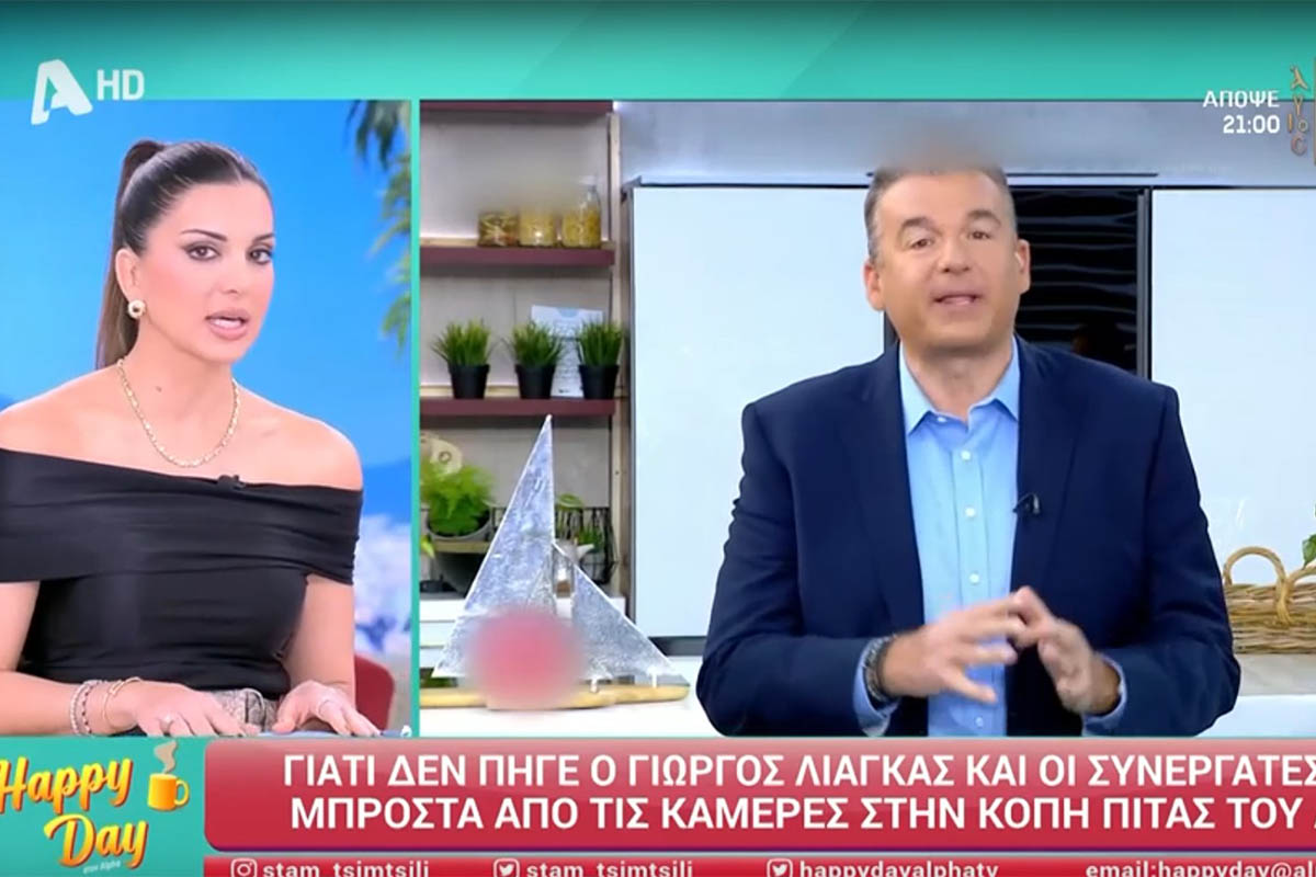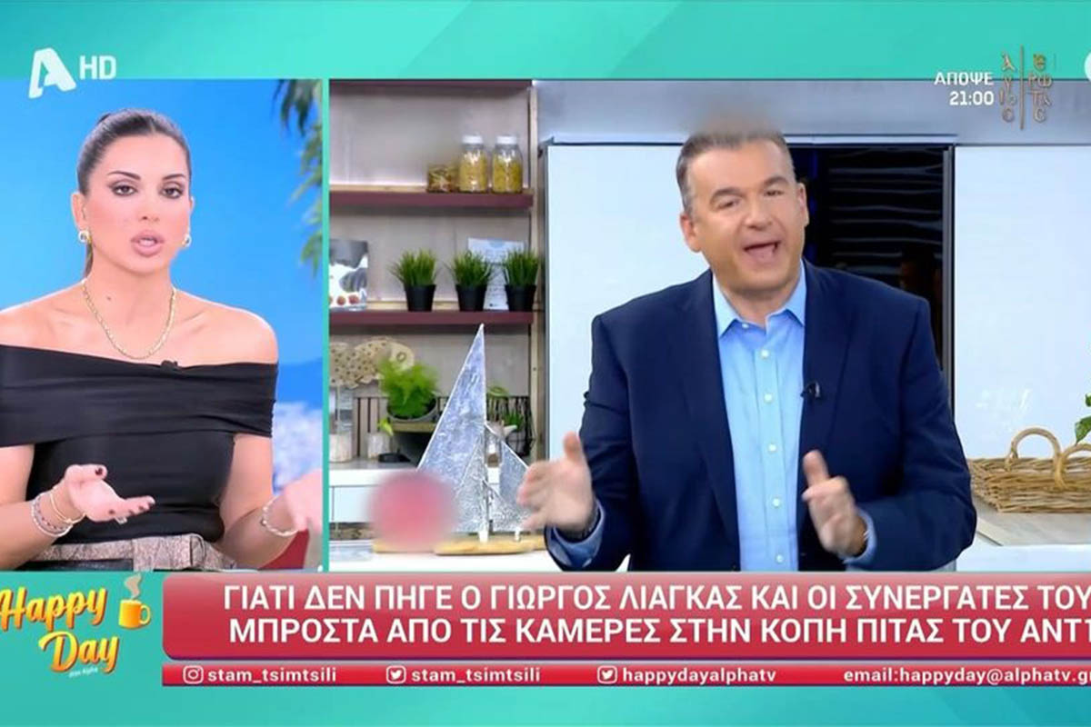 Κατά τη διάρκεια της εκπομπής «Happy Day» σχολίαζαν την χθεσινή κοπή της πρωτοχρονιάτικης πίτας του τηλεοπτικού σταθμού ΑΝΤ1. Η Σταματίνα Τσιμτσιλή θέλησε να τοποθετηθεί για την απουσία του Γιώργου Λιάγκα και τον συντελεστών της εκπομπής του.