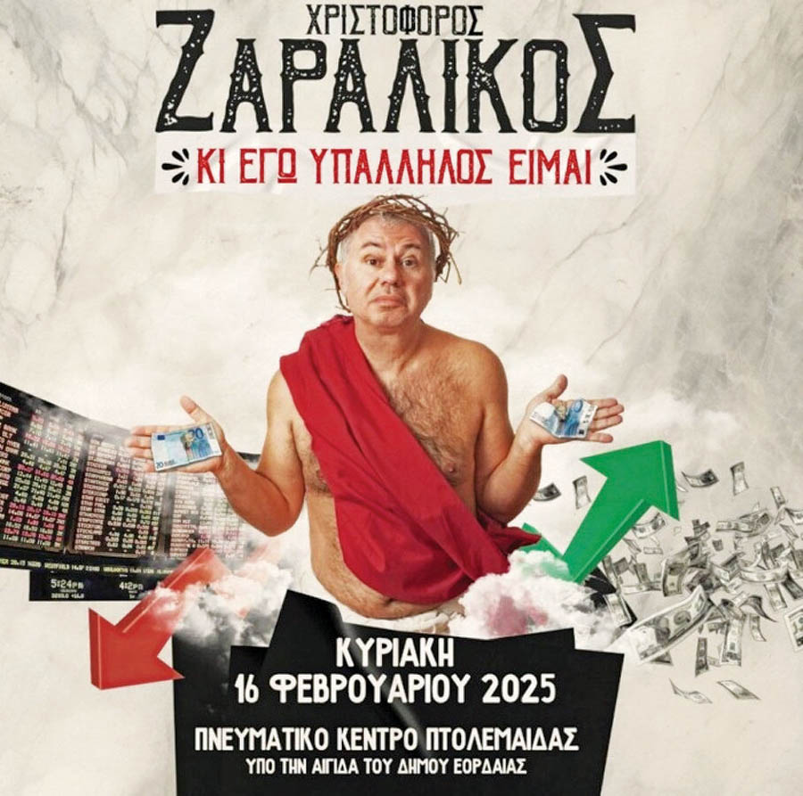 Η διαμαρτυρία έγινε για να μην ανέβει η προγραμματισμένη παράσταση του γνωστού ηθοποιού και stand up comedian με τίτλο «Κι εγώ υπάλληλος είμαι», καθώς υπήρξαν αντιδράσεις για την αφίσα της. Τι απεικονίζει; Τον Χριστόφορο Ζαραλίκο με αγκάθινο στεφάνι και κόκκινο χιτώνα, που παραπέμπει στην εικόνα του Εσταυρωμένου, να κρατά στα χέρια του χαρτονομίσματα των 20 ευρώ.