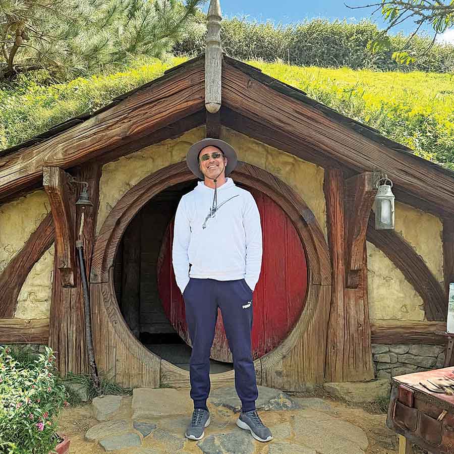 Οντας λάτρης των ταξιδιών, και δη των μακρινών, ο δημοφιλής ηθοποιός, σεναριογράφος και παρουσιαστής έφτασε τούτη τη φορά μέχρι τη Νέα Ζηλανδία. Και φυσικά δεν έχασε την ευκαιρία να επισκεφθεί και το «χωριό των Χόμπιτ», συγκεκριμένα το Hobbiton.