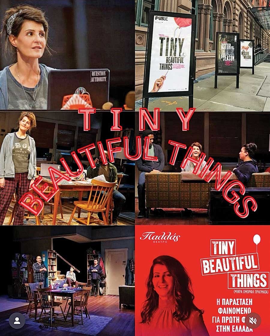 Το «Tiny Beautiful Τhings» (Μικρά όμορφα πράγματα) είναι η θεατρική διασκευή που έχει κάνει η ίδια στο ομώνυμο μυθιστόρημα της Cheryl Strayed, την οποία ανέβασε σε σκηνές στη Νέα Υόρκη και στο Λος Αντζελες. «Και τώρα αρχίζουν οι πρόβες για το ‘‘Tiny Beautiful Things’’ στην Αθήνα. Είμαι ενθουσιασμένη και τρομοκρατημένη που θα παίξω για πρώτη φορά στα ελληνικά πάνω στη σκηνή.