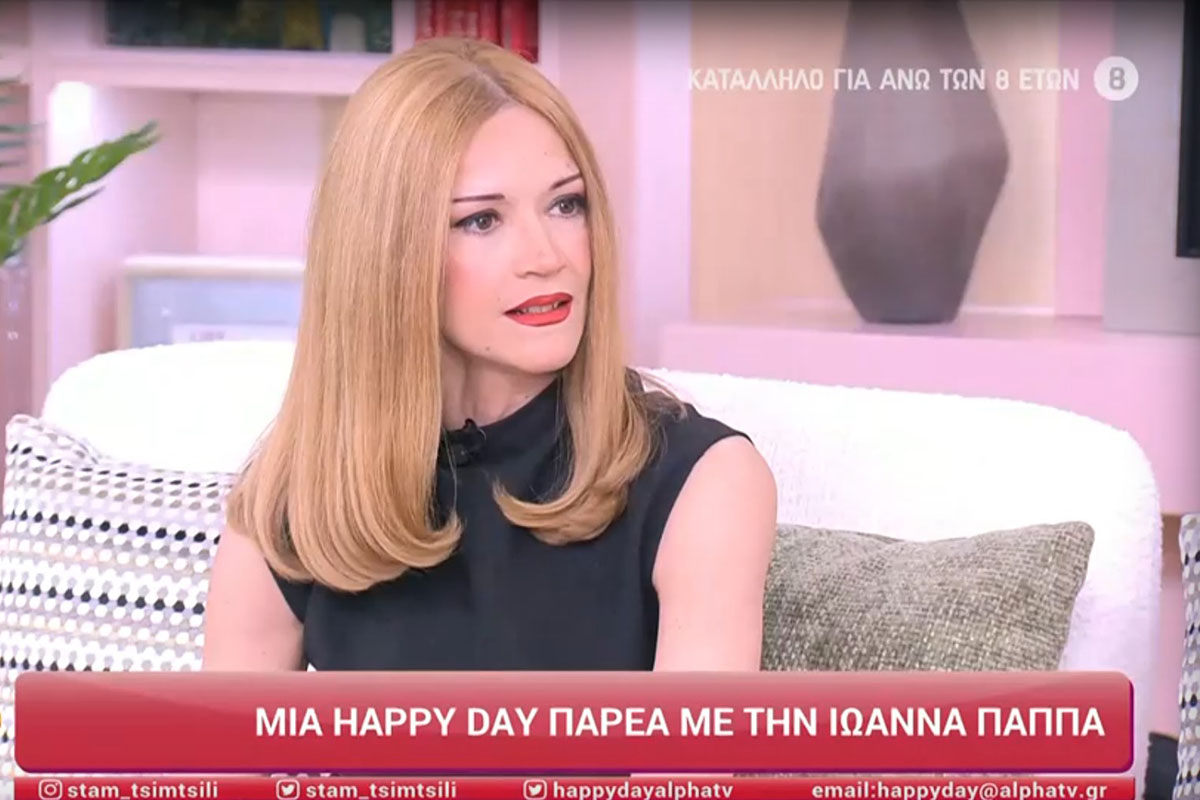 Η Ιωάννα Παππά, η γοητευτική κοσμοπολίτισσα Κατρίν της σειράς «Άγιος Έρωτας», παραβρέθηκε στο πλατό της εκπομπής «Happy Day» και παραχώρησε μια συνέντευξη. Η γνωστή ηθοποιός, μεταξύ άλλων, αναφέρθηκε στον σύζυγό της και στο ρόλο της στην σειρά του Alpha.