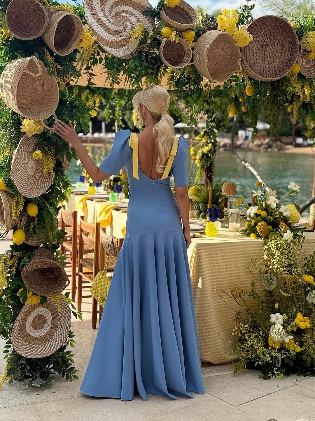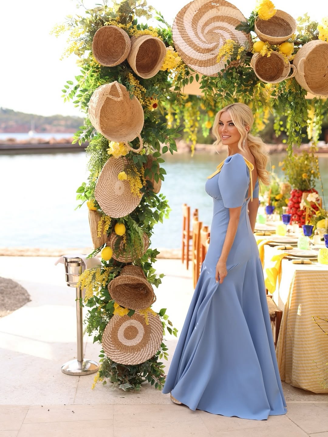 Η παρουσιάστρια συνοδευόμενη από τον μέλλοντα σύζυγό της, Παναγιώτη Κουτσουμπή έφτασε στην εκκλησία με ένα όμορφο γαλάζιο φόρεμα. Το όνομα αυτού…Μαρίνος. Πρόκειται για τον γιο της καλής της φίλης Κατερίνας Καλίνογλου.