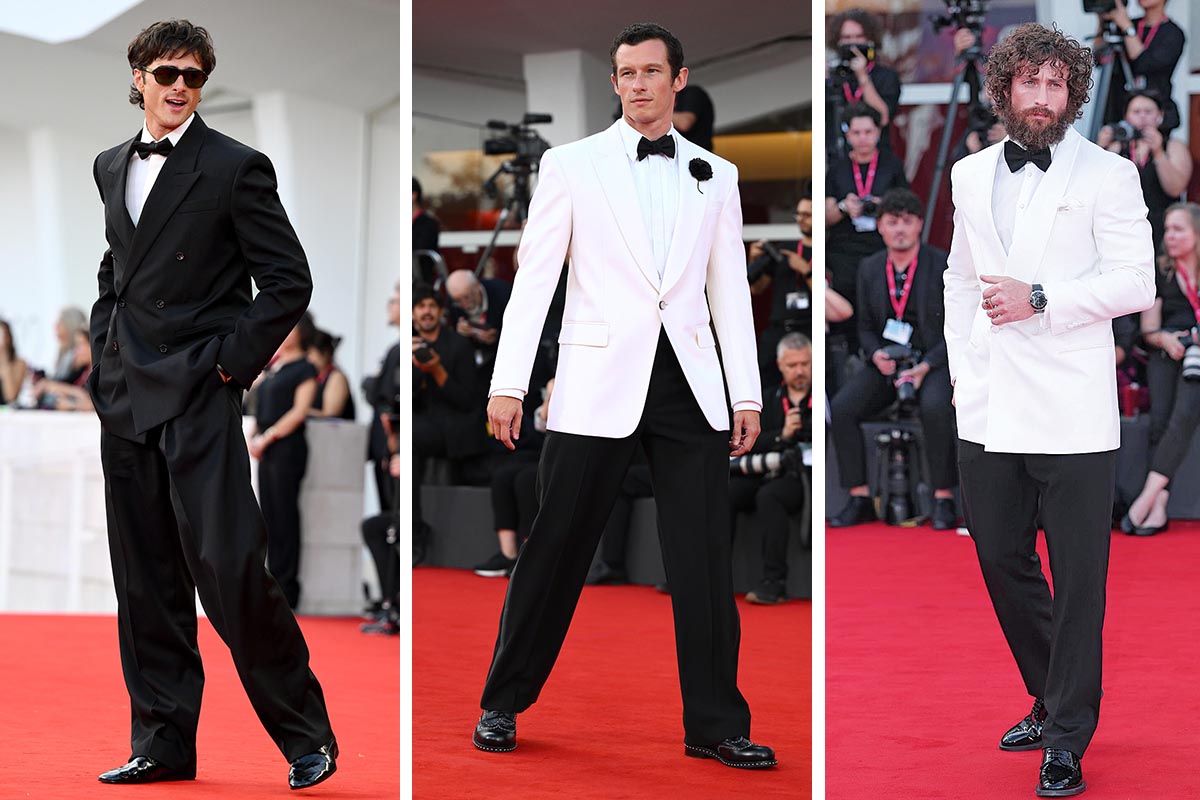 Ο Κάλουμ Τέρνερ έδωσε το «παρών» στην ιταλική πόλη των καναλιών για την πρεμιέρα της νέας του ταινίας «Frankenstein». Ο 35χρονος σύντροφος της ποπ σταρ Ντούα Λίπα, που θεωρείται το τρίτο φαβορί για νέος Μποντ, επέλεξε λευκό σακάκι και λευκό πουκάμισο, τα οποία συνδύασε με μαύρο παπιγιόν και μαύρο παντελόνι.