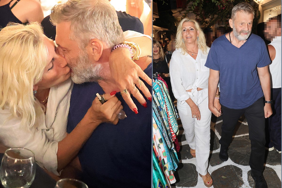 Ο φωτογραφικός μας φακός τους απαθανάτισε σε βραδινή έξοδό τους να φιλιούνται με πάθος και να βολτάρουν στα σοκάκια της Μυκόνου.