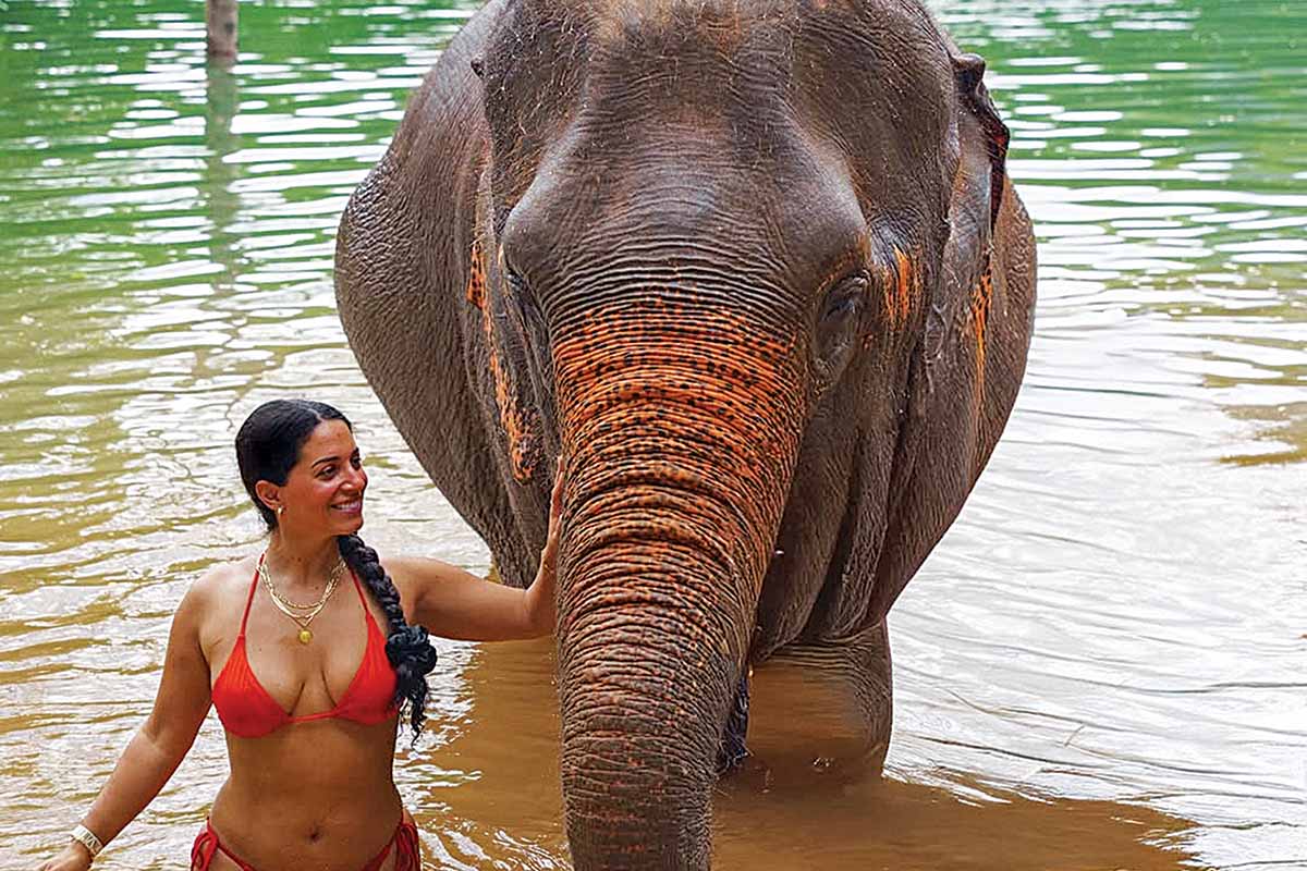 Οι νέες της αναρτήσεις στα social media είναι από το Κράμπι, έναν από τους πιο μαγευτικούς προορισμούς της Ταϊλάνδης. Εκεί επισκέφτηκε το Καταφύγιο Ελεφάντων του Κράμπι, που προσφέρει ένα νέο σπίτι για τους εξαντλημένους ελέφαντες, τους οποίους διασώζουν και καλωσορίζουν πίσω, στο φυσικό τους περιβάλλον. Η Ελενα έπαιξε μαζί τους, τους τάισε και έβγαλε πολλές φωτογραφίες.