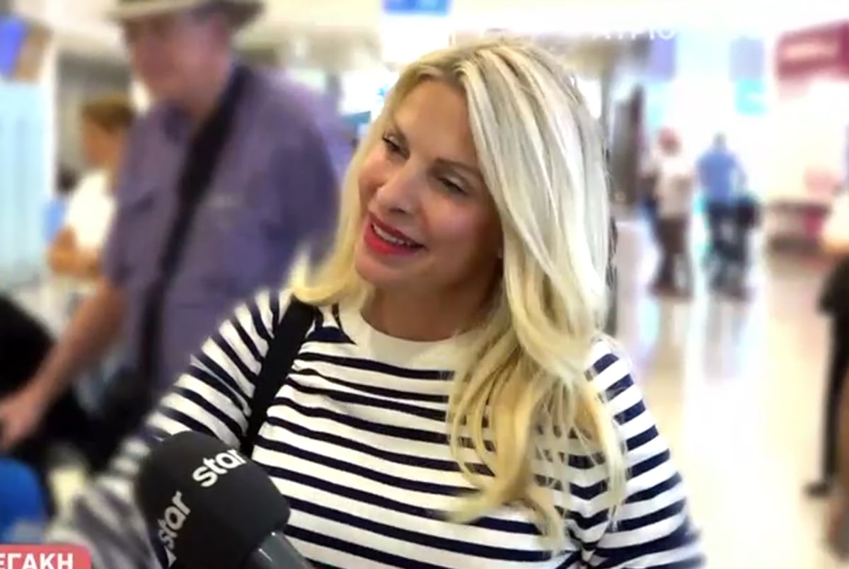 «Τι έγινε παιδιά; Ωραία υποδοχή μου έχετε», είπε ενώ σήκωσε το τηλέφωνό της και είπε στον σύζυγό της, Μάκη Παντζόπουλο: «Αγάπη μου, σε κλείνω κι έρχομαι».