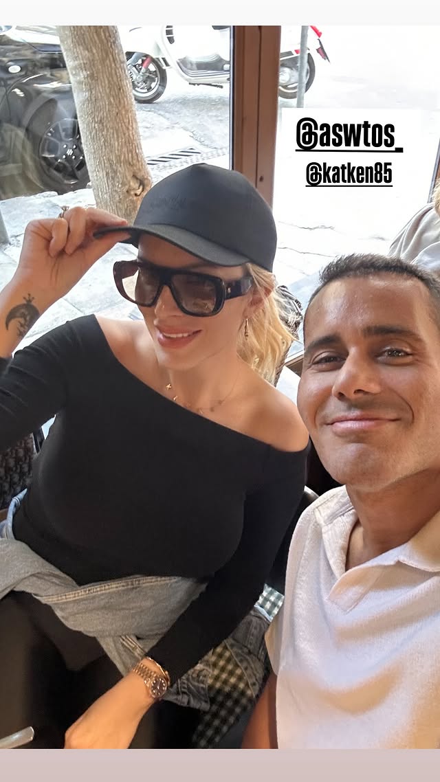 Το μεσημέρι της Κυριακής βγήκε για φαγητό στο μαγαζί του συντρόφου της, Παναγιώτη Κουτσουμπή και πόζαρε με τον Νίκο Γεωργιάδη για μια φωτογραφία την οποία ο δημοσιογράφος πόσταρε στο instagram. Όπως θα δείτε επειδή φοράει κολλητή μπλούζα και κολάν φαίνεται πως έχει πάρει κιλά ενώ έχει κρύψει την κοιλιά της φορώντας μια μπλούζα στη μέση.