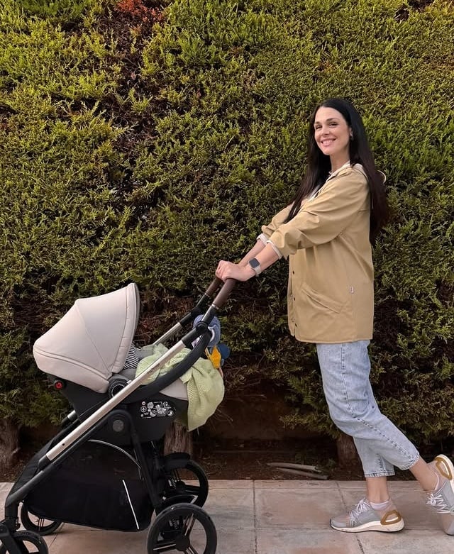 Ο γιος της, της έχει αλλάξει τη ζωή και δεν χορταίνει να περνάει χρόνο μαζί του έχοντας δίπλα της τον σύζυγό της και γνωστό ηθοποιό Κίμωνα Κουρή. Η ηθοποιός δημοσίευσε φωτογραφίες της να είναι σε περίπατο με το μωράκι της. Έχοντας χάσει τα περισσότερα κιλά της εγκυμοσύνης πόζαρε ευδιάθετη και χαμογελαστή.