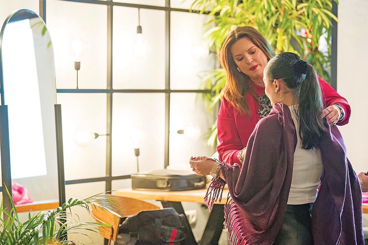 Η Ανδριάνα Ανδρέου με πελάτισσά της