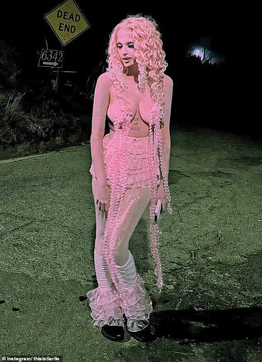 Σαν άγριο θηλυκό, η 25χρονη κόρη της Ελίζαμπεθ Μέρντοχ πήγε σε πάρτι ουσιαστικά topless, καθώς η στολή ροζ μέδουσας που έβαλε δεν προέβλεπε σουτιέν. Τη γύμνια του στήθους της πάσχιζαν να καλύψουν κάτι κρόσσια που έμοιαζαν με πλοκάμια, την ώρα που εξίσου αποκαλυπτική ήταν η ροζ μίνι φούστα που συμπλήρωνε τη στολή, ενώ ένα τεράστιο καπέλο αποτελούσε το σώμα της μέδουσας.