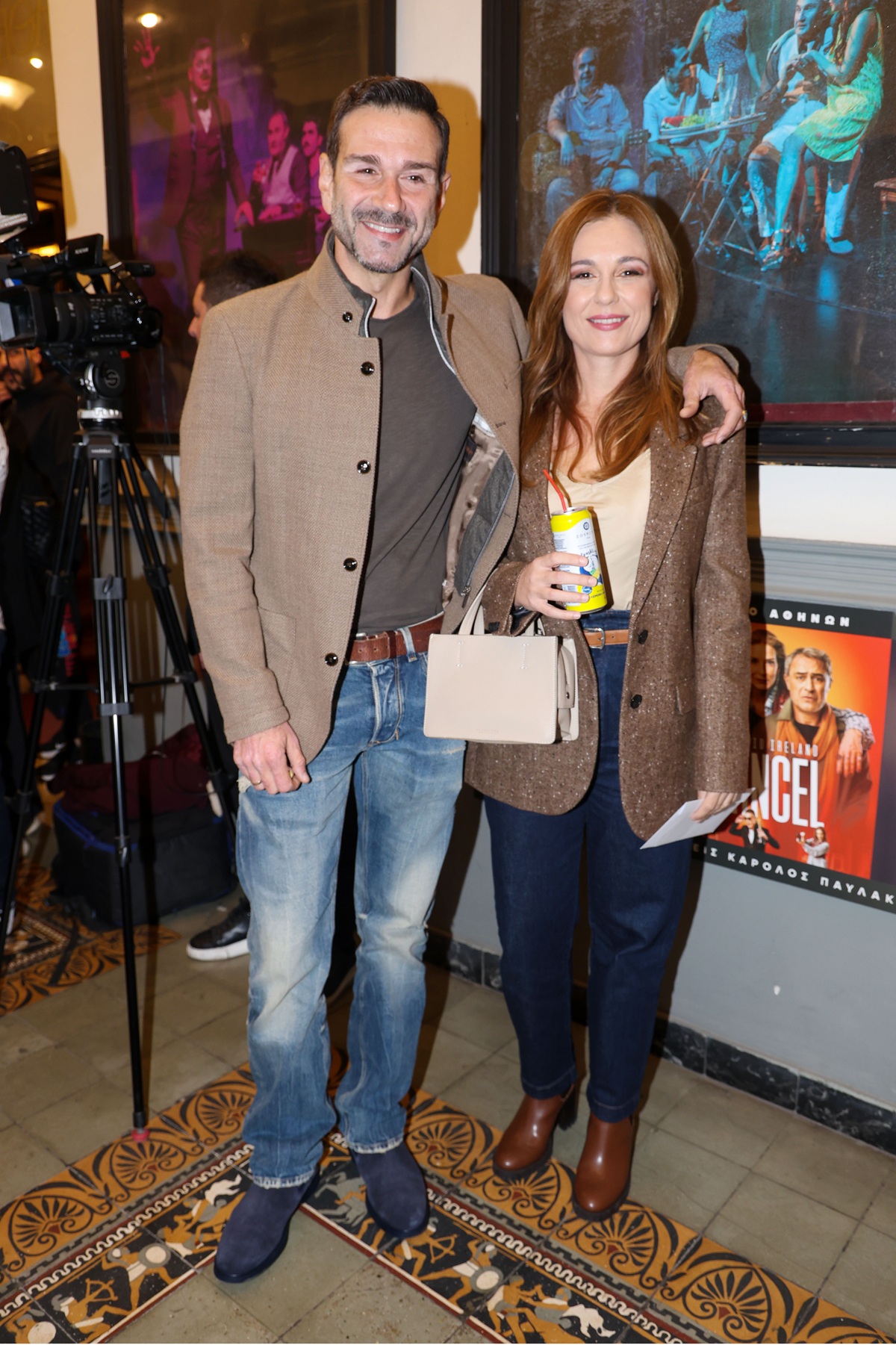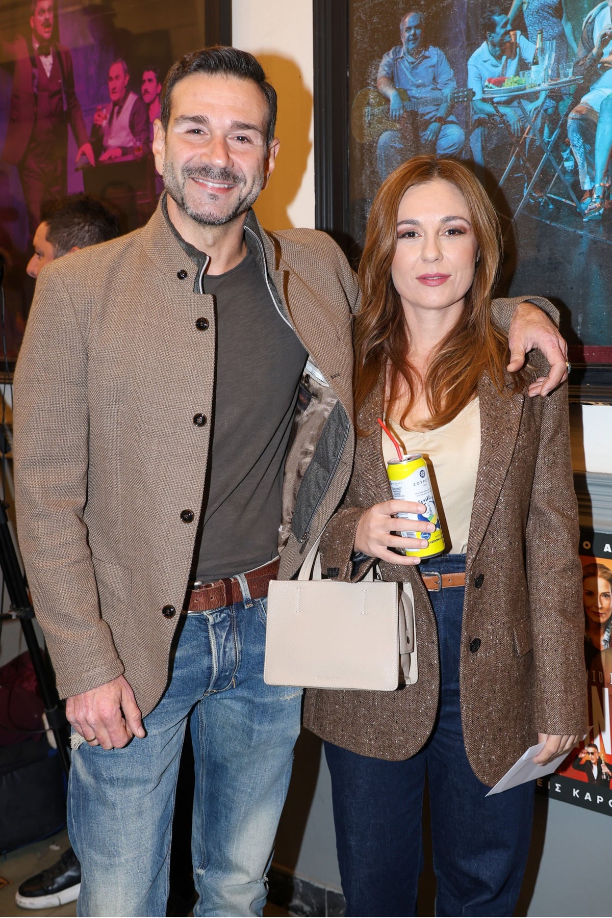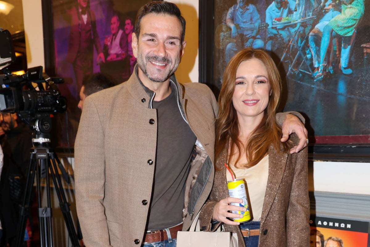 Το ζευγάρι πήγε στην επίσημη πρεμιέρα της παράστασης «Άρωμα γυναίκας» στο θέατρο Βρετάνια και πόζαρε στον φωτογραφικό μας φακό. Ντυμένοι κομψά στις ίδιες αποχρώσεις έφτασαν στο θέατρο και απόλαυσαν την παράσταση.