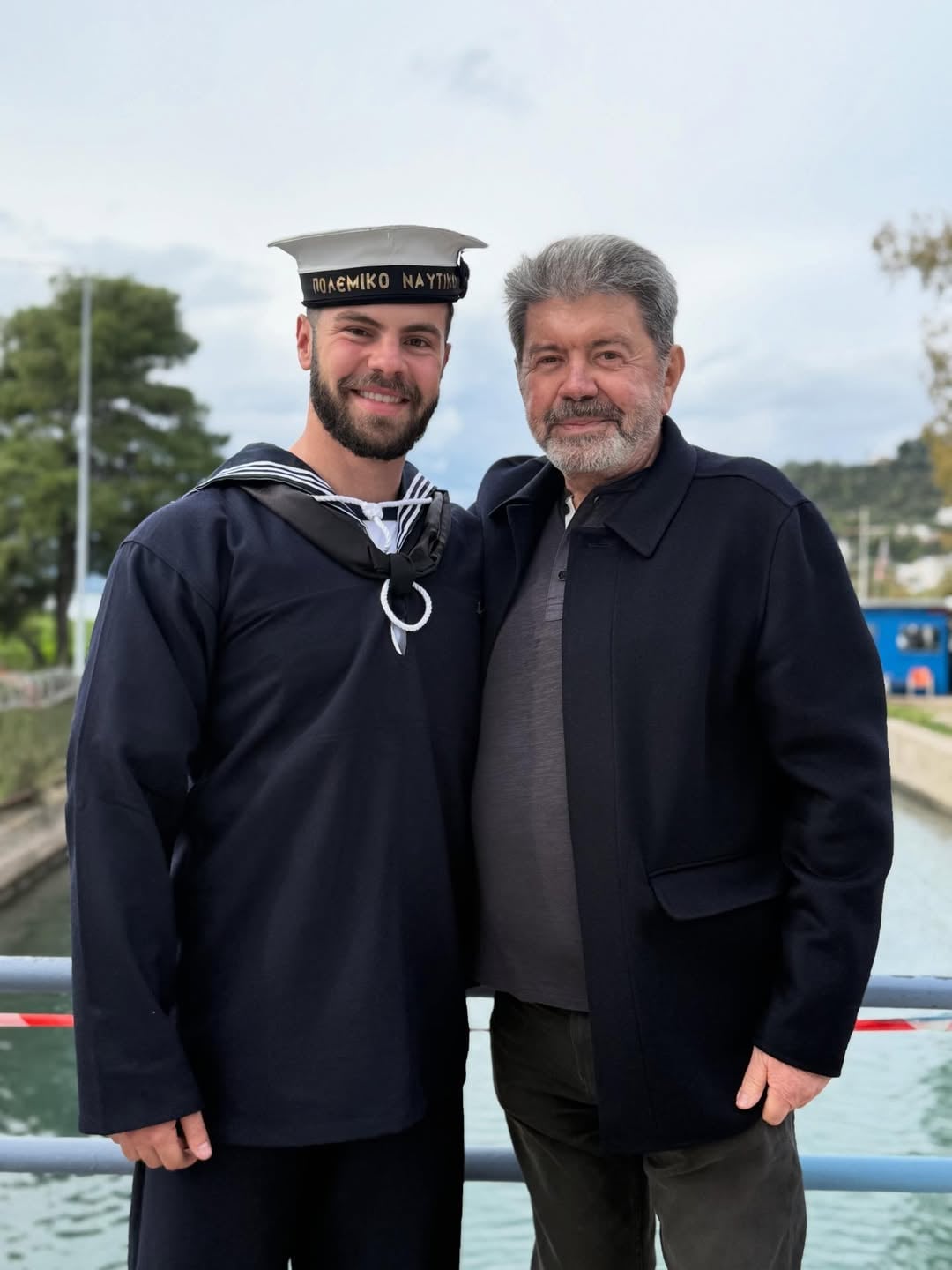 Ο γιος της Ελένης Μενεγάκη και του Γιάννη Λάτσιου, Άγγελος παρουσιάστηκε στο ναυτικό για τη στρατιωτική του θητεία.