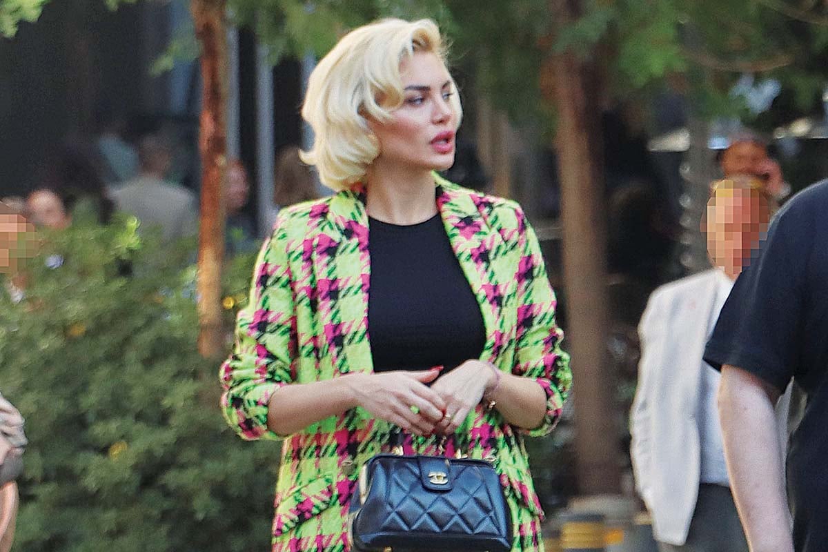 Χωρίς τα εξτένσιον αυτή τη φορά (αφού τον τελευταίο καιρό πειραματίζεται με τα μαλλιά της), με λαχανί σύνολο και κοντή φούστα, τράβηξε τα βλέμματα των περαστικών.