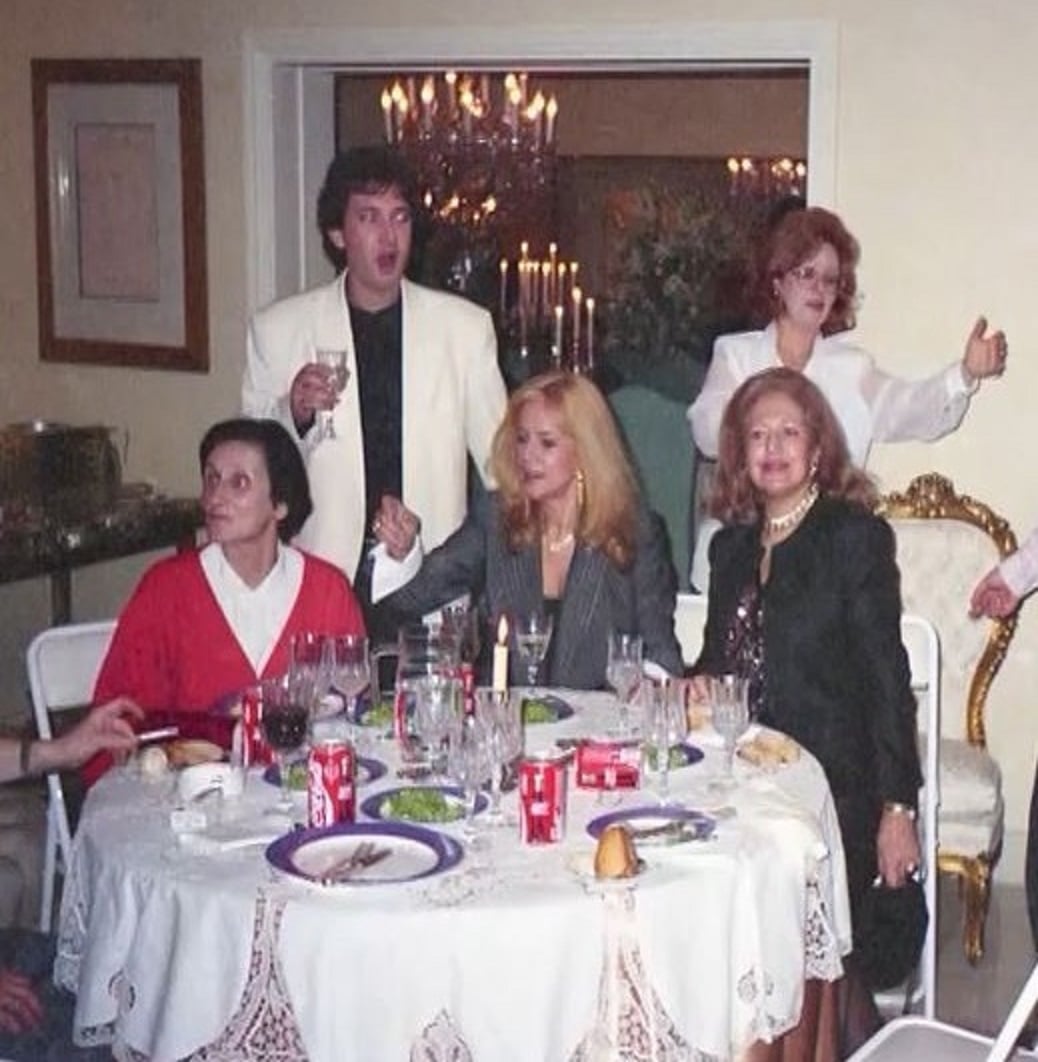 «Ανέκδοτη φωτογραφία από τα τελευταία Χριστούγεννα της Αλίκης Βουγιουκλάκη στο σπίτι της στην Στησιχόρου μαζί με τον Μάκη Δελαπόρτα, την Νίτσα την δασκάλα του γιου της που έμεινε στο πλευρό της και με την φίλη της Μουμού Ηλιοπούλου. 25/12/1995», έγραφε η λεζάντα.