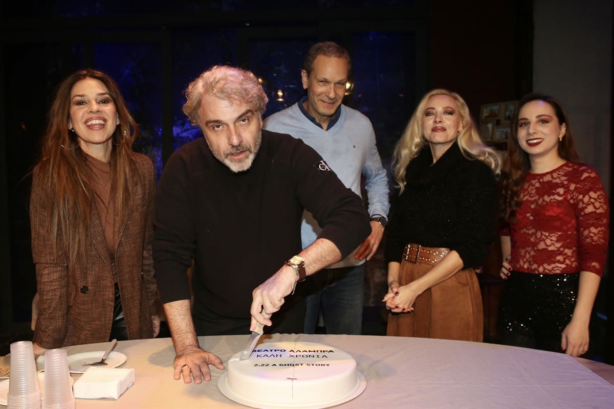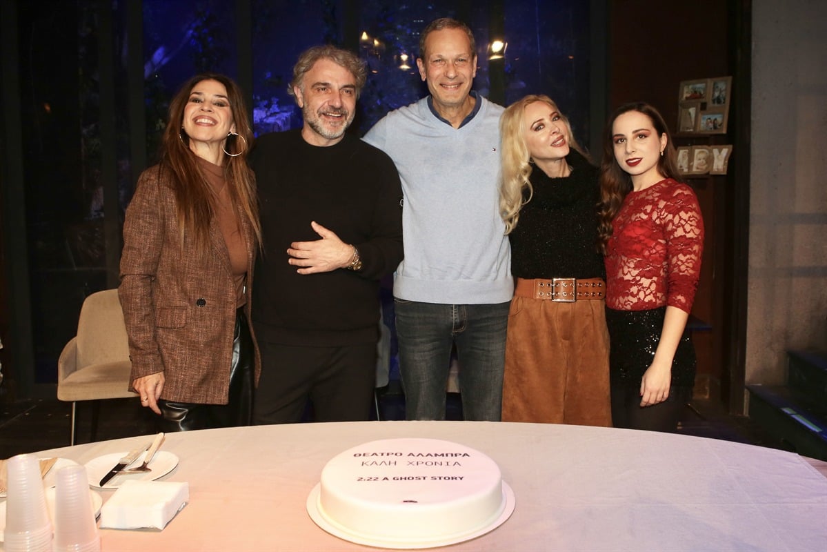 Την πρωτοχρονιάτικη πίτα έκοψαν οι συντελεστές της παράστασης «2:22 – A Ghost Story» στο θέατρο Αλάμπρα.