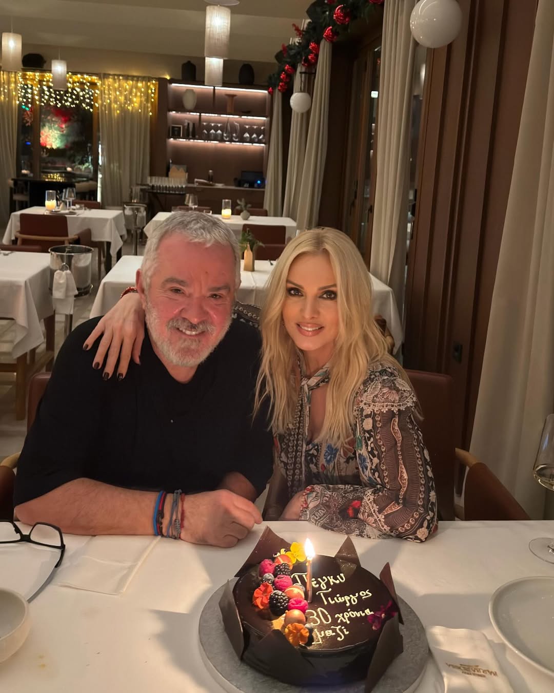 Το απόγευμα της Δευτέρας 5 Ιανουαρίου, το ζευγάρι απόλαυσε ένα ρομαντικό δείπνο στο αγαπημένο του εστιατόριο, ενώ η βραδιά ολοκληρώθηκε με μια τούρτα αφιερωμένη στα 30 χρόνια που είναι μαζί.