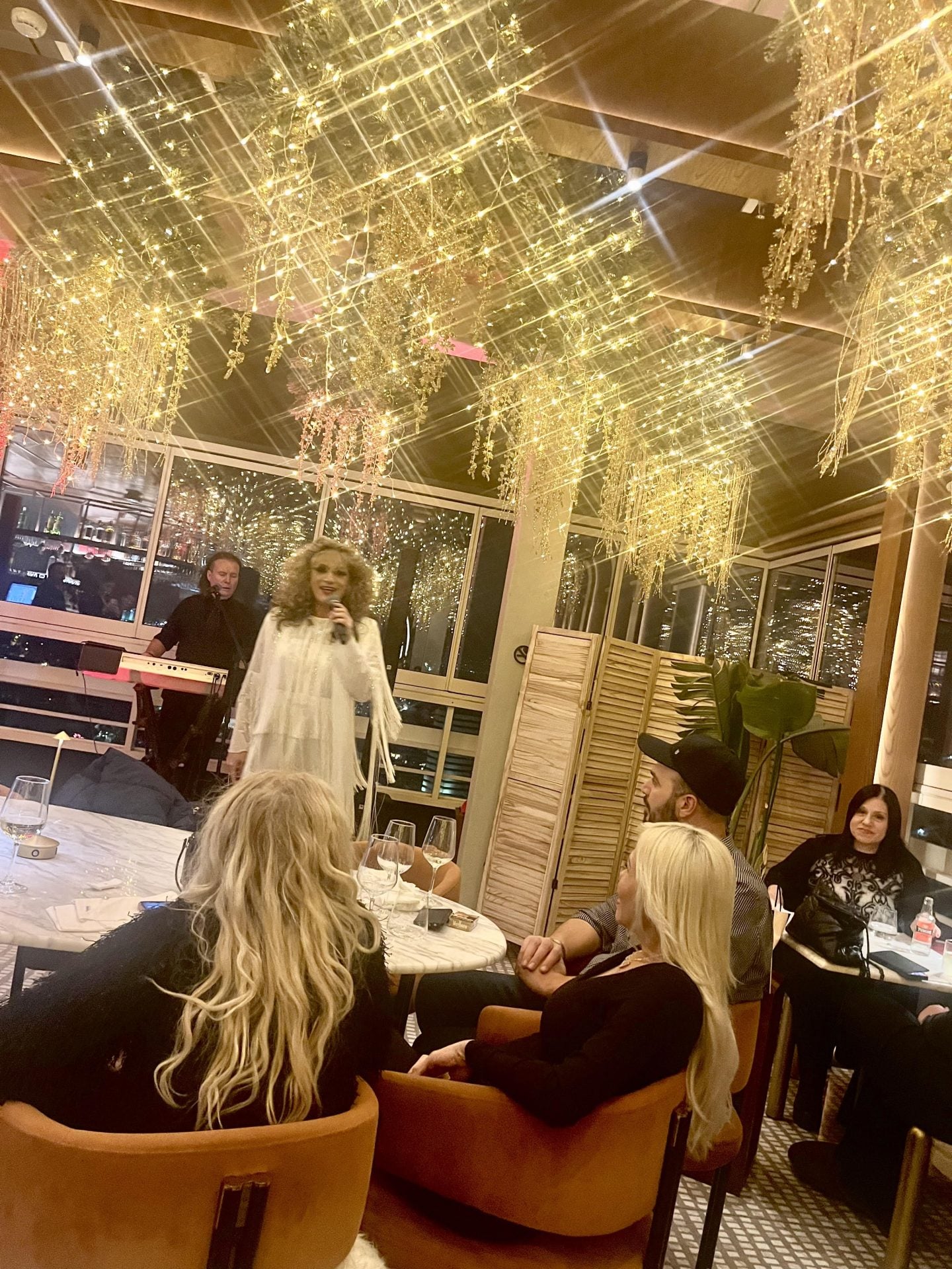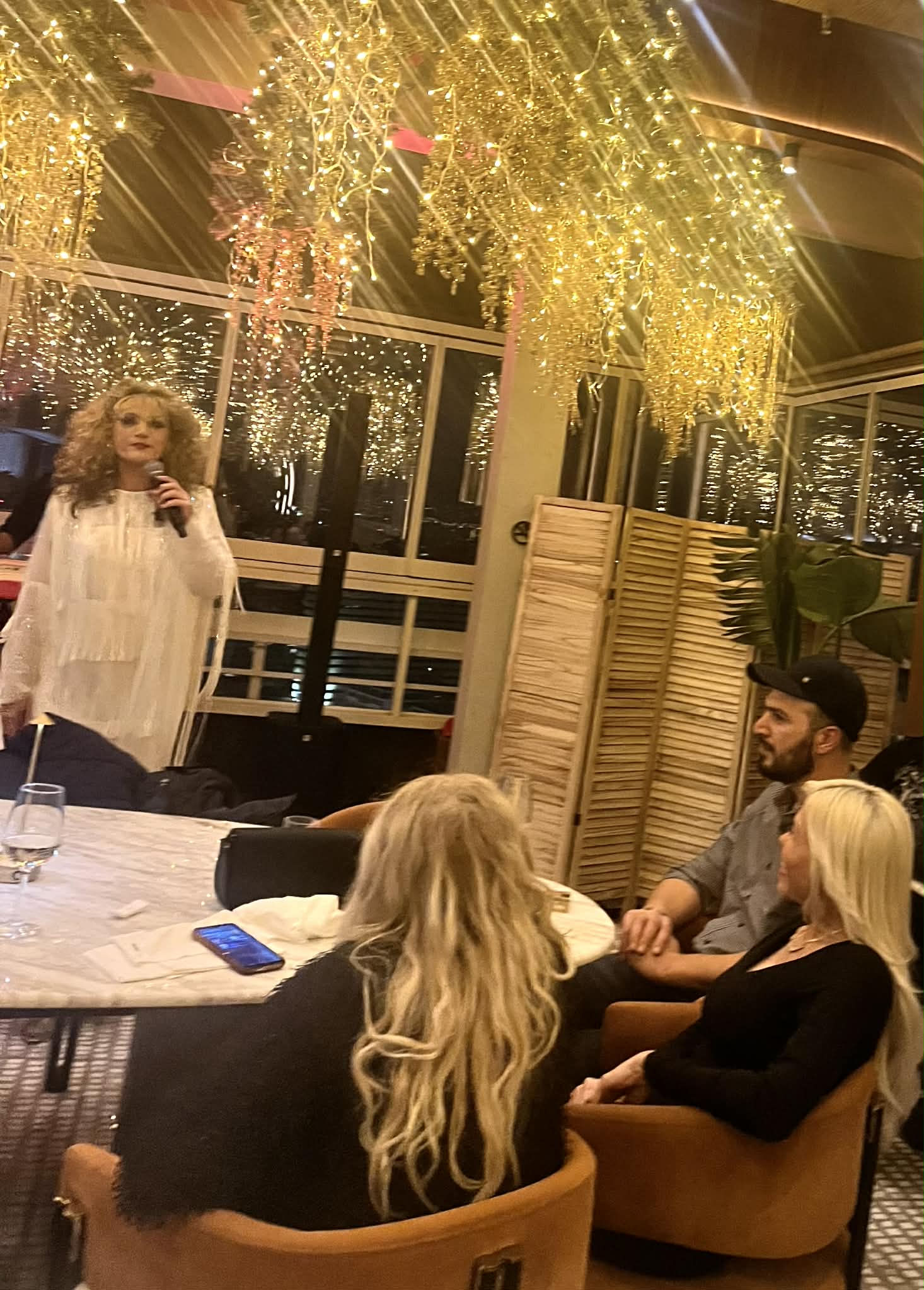 Η γοητευτική Αννούλα κάθισε στο πρώτο τραπέζι με την παρέα της και τον γοητευτικό συνοδό της.