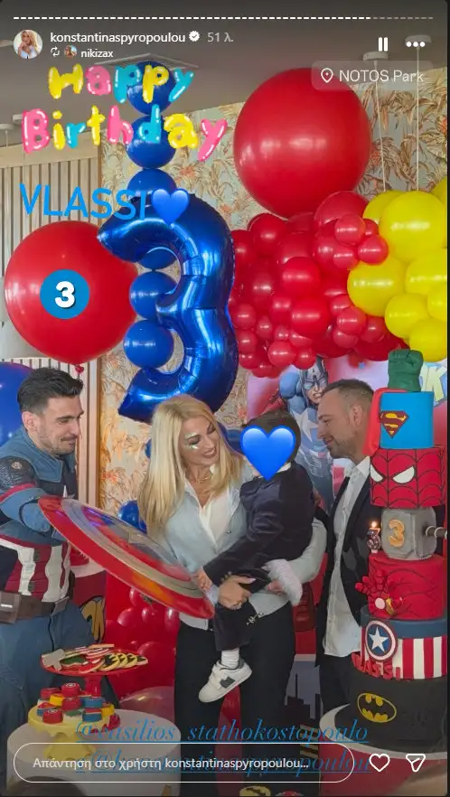 Με ένα μεγάλο πάρτι η Κωνσταντίνα Σπυροπούλου και ο Βασίλης Σταθοκωστόπουλος γιόρτασαν τα γενέθλια του γιου τους, Βλάσση, που έκλεισε τα τρία του χρόνια.