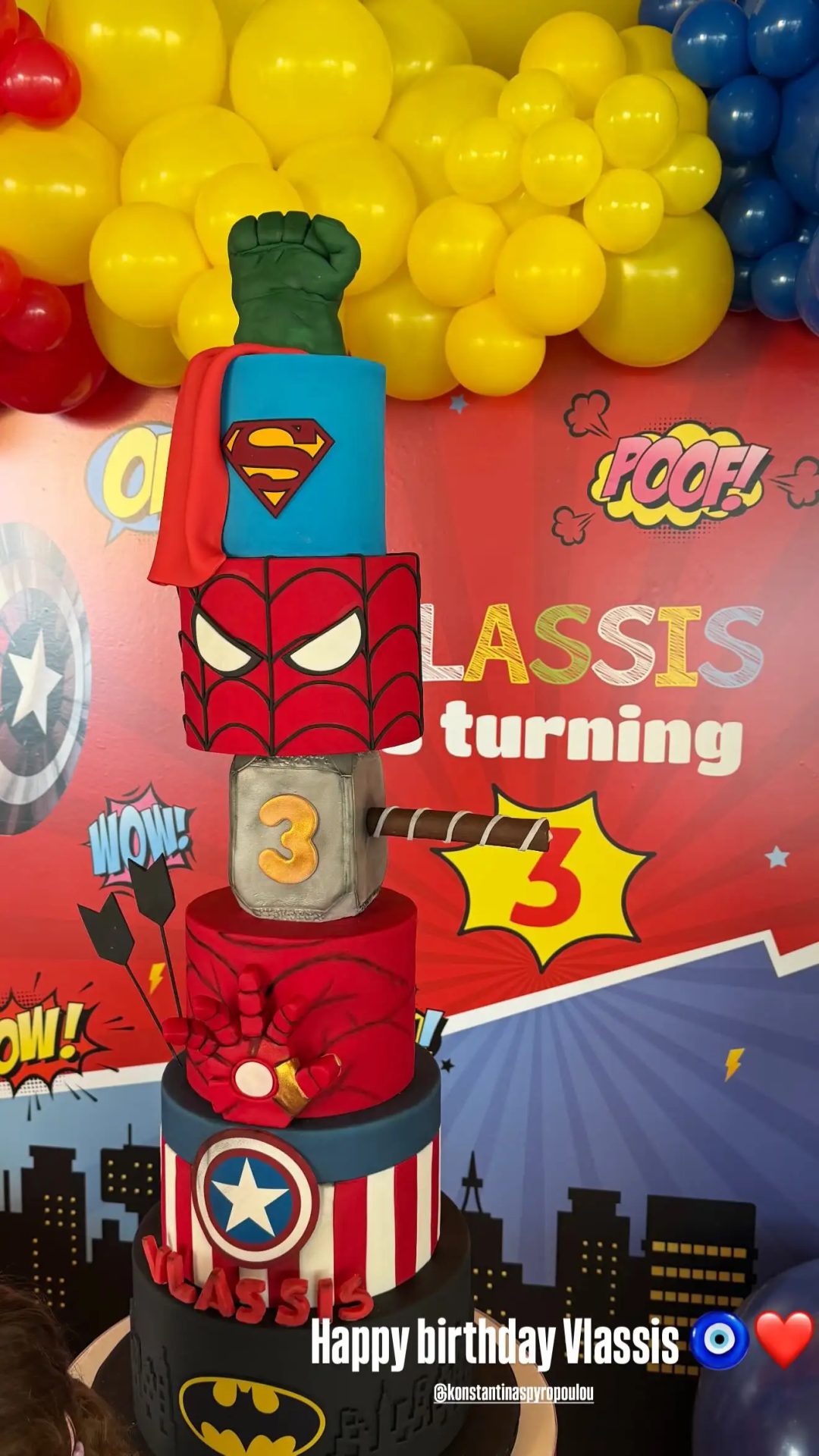 Η παρουσιάστρια δημοσίευσε στον λογαριασμό της στο Instagram βίντεο και φωτογραφίες από το παιδικό πάρτι, αλλά και από την εντυπωσιακή, πανύψηλη τούρτα με τους αγαπημένους σούπερ ήρωες του μικρού.