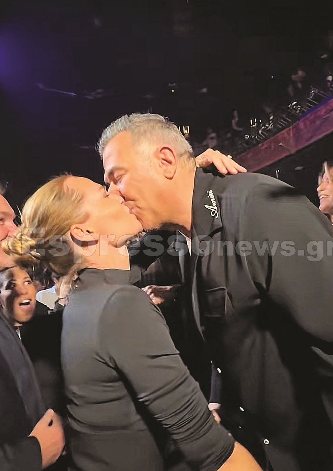 Φυσικά, πέρασε και από τα αγαπημένα του κορίτσια, και εκεί έμεινε αρκετά λεπτά! Η Μαρία Μπεκατώρου τραγούδησε μαζί του, ανέβηκε στον καναπέ, τον αγκάλιασε και τον φίλησε, ενώ στη συνέχεια εκείνος πλησίασε τη σύζυγό του και της έδωσε ένα φιλί στο στόμα γεμάτο πάθος! Οσοι ήταν κοντά έκαναν λόγο για ένα «αληθινό» φιλί, αφού τα στόματά τους ενώθηκαν για αρκετά δευτερόλεπτα. Ο Αντώνης Ρέμος και η Υβόννη Μπόσνιακ παραμένουν ένα ζευγάρι με τη σπίθα του έρωτά τους αναμμένη και ο καλλιτέχνης, κάθε φορά που την αντικρίζει ενώ εκείνος είναι στην πίστα, λάμπει.
