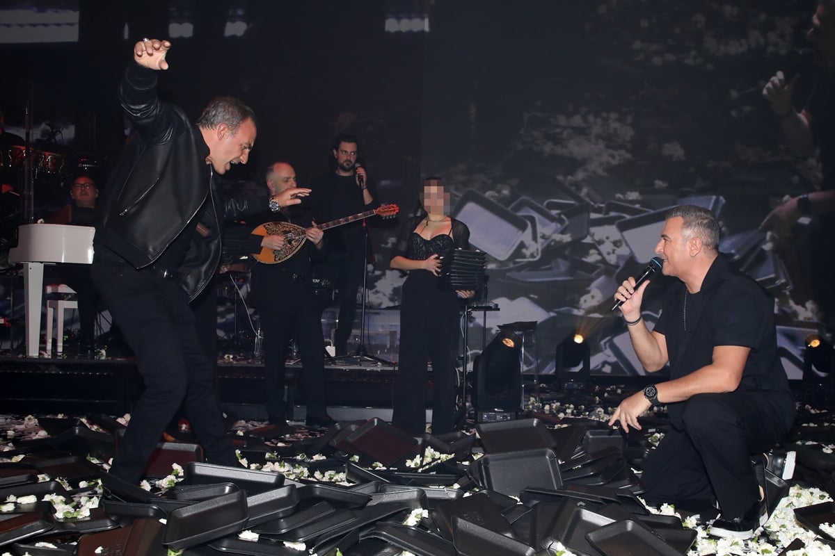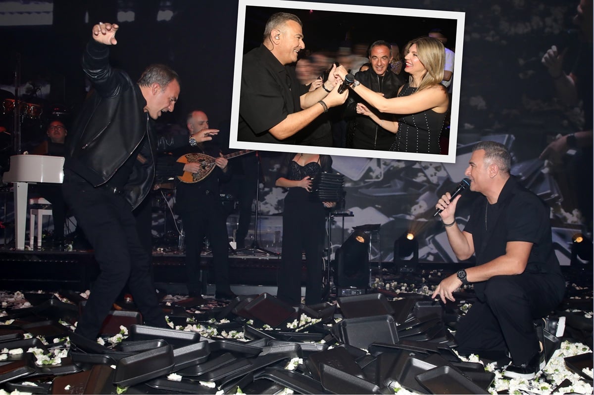 Ο τραγουδιστής πλησίασε το τραπέζι τους και αφού χαιρέτησε με ένα χειροφίλημα την Τίνα Γρηγορίου στη συνέχεια με τον Νίκο Αλιάγα τραγούδησαν μαζί ξεσηκώνοντας το μαγαζί. Ο φωτογραφικός μας φακός ήταν εκεί και τα κατέγραψε όλα.