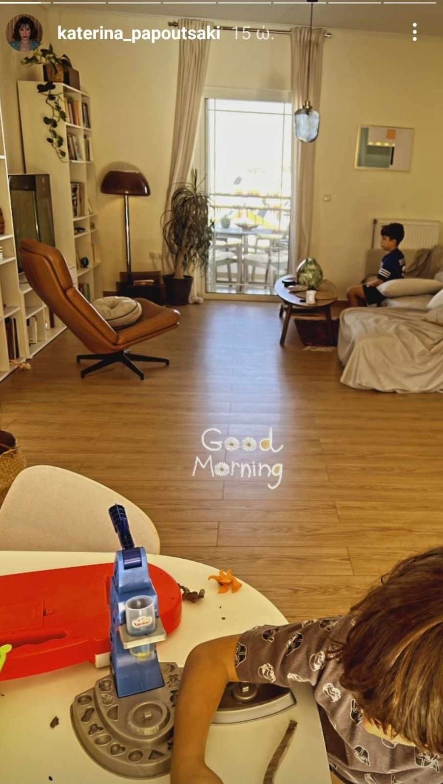 Αυτήν την περίοδο έχει ιδιαίτερα απαιτητικό πρόγραμμα καθώς από τη μία είναι τα γυρίσματα της σειράς «Άγιος έρωτας» και από την άλλη το θέατρο ωστόσο πάντα ο χρόνος για τα παιδιά της είναι όσος περισσότερος μπορεί.