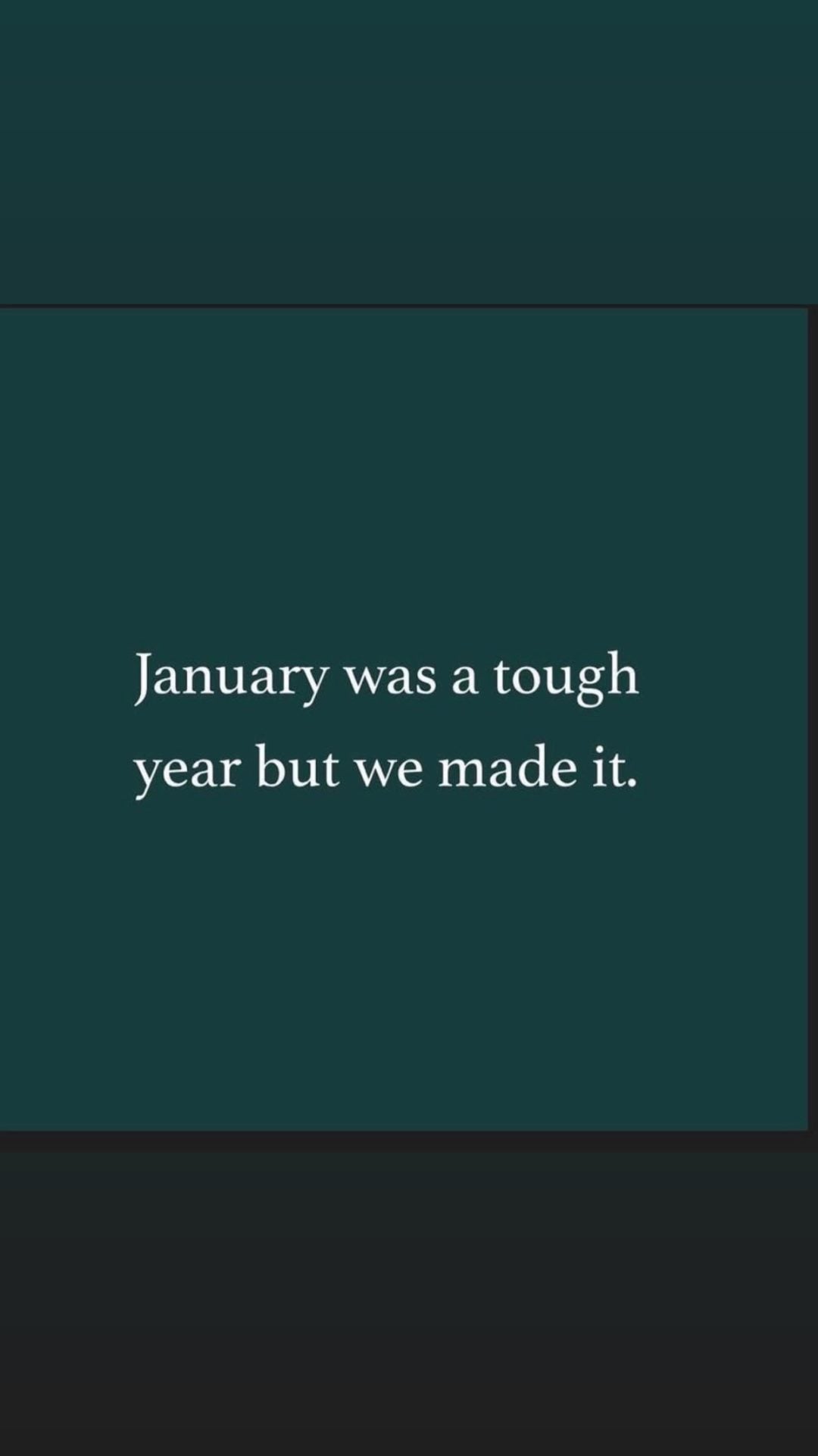 Σήμερα, 1/2, ανέβασε στόρι στον προσωπικό της λογαριασμό στο Instagram, γράφοντας χαρακτηριστικά: «Ο Ιανουάριος ήταν μία δύσκολη χρονιά, αλλά τα καταφέραμε», δείχνοντας ότι παραμένει αισιόδοξη παρά τις δυσκολίες.